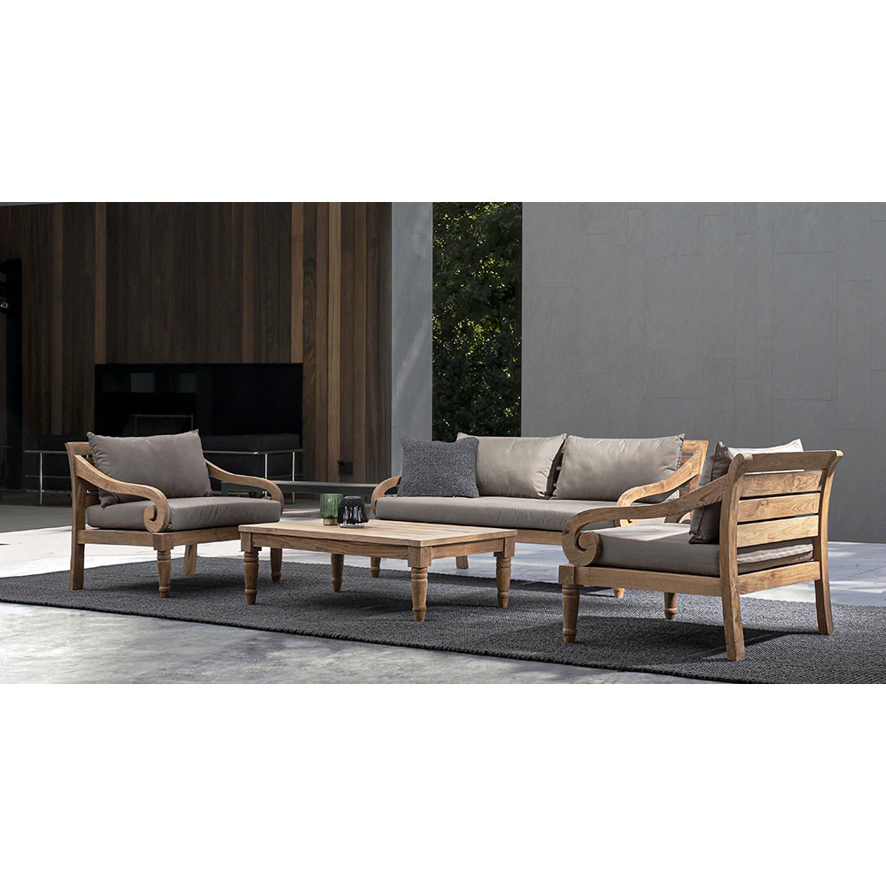 Struktura në dru tik prej FSC përfundimi fshatar 100% natyral Jastëkët e lëvizshëm me pëlhurë të mbrojtur nga dielli Olefin (100% polipropilen).