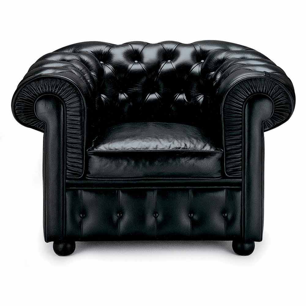 Kolltuk klasik prej lëkure me këmbë druri të prodhuara në Itali.
