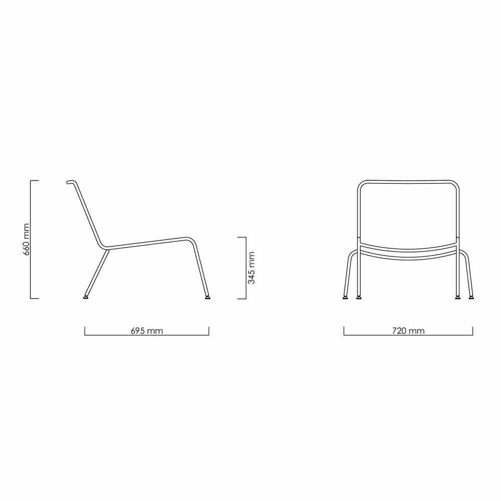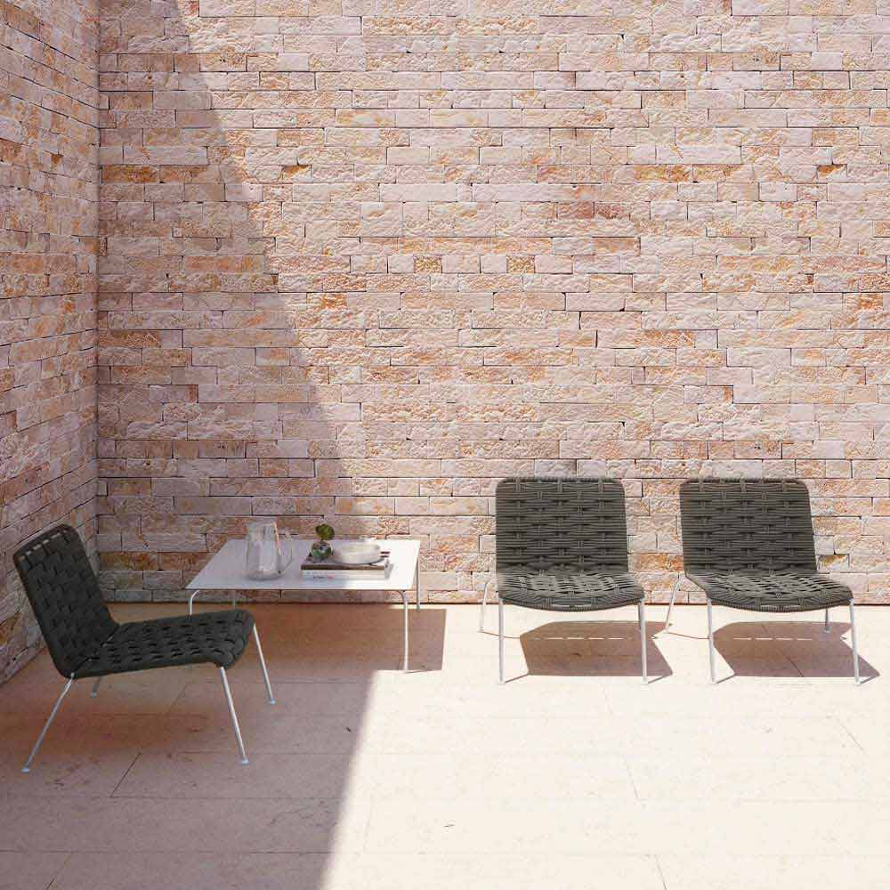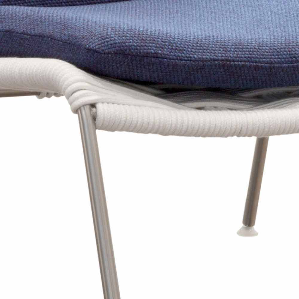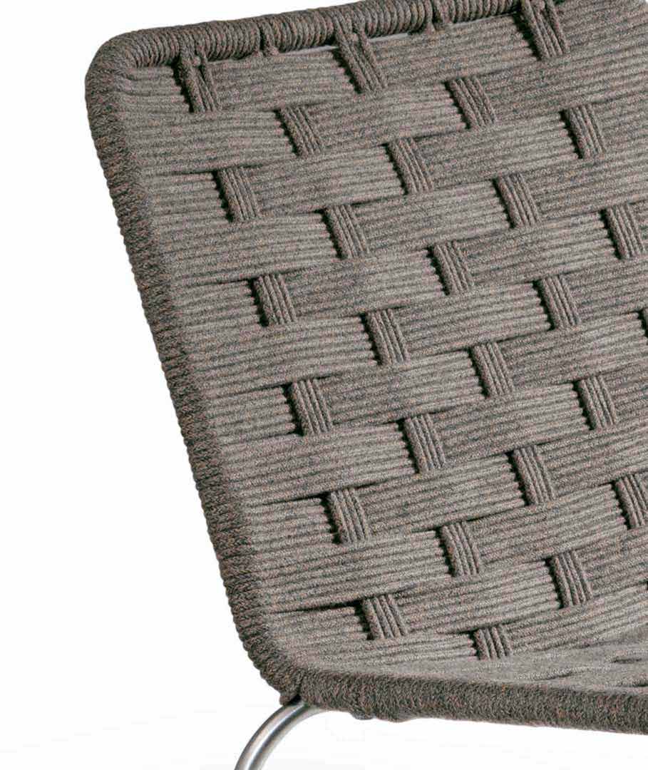 Shtë një kolltuk i vogël me strukturë çeliku inox saten. Selia dhe mbështetësja e thurur në kordonin akrilik me mundësinë e zgjedhjes midis ngjyrave: