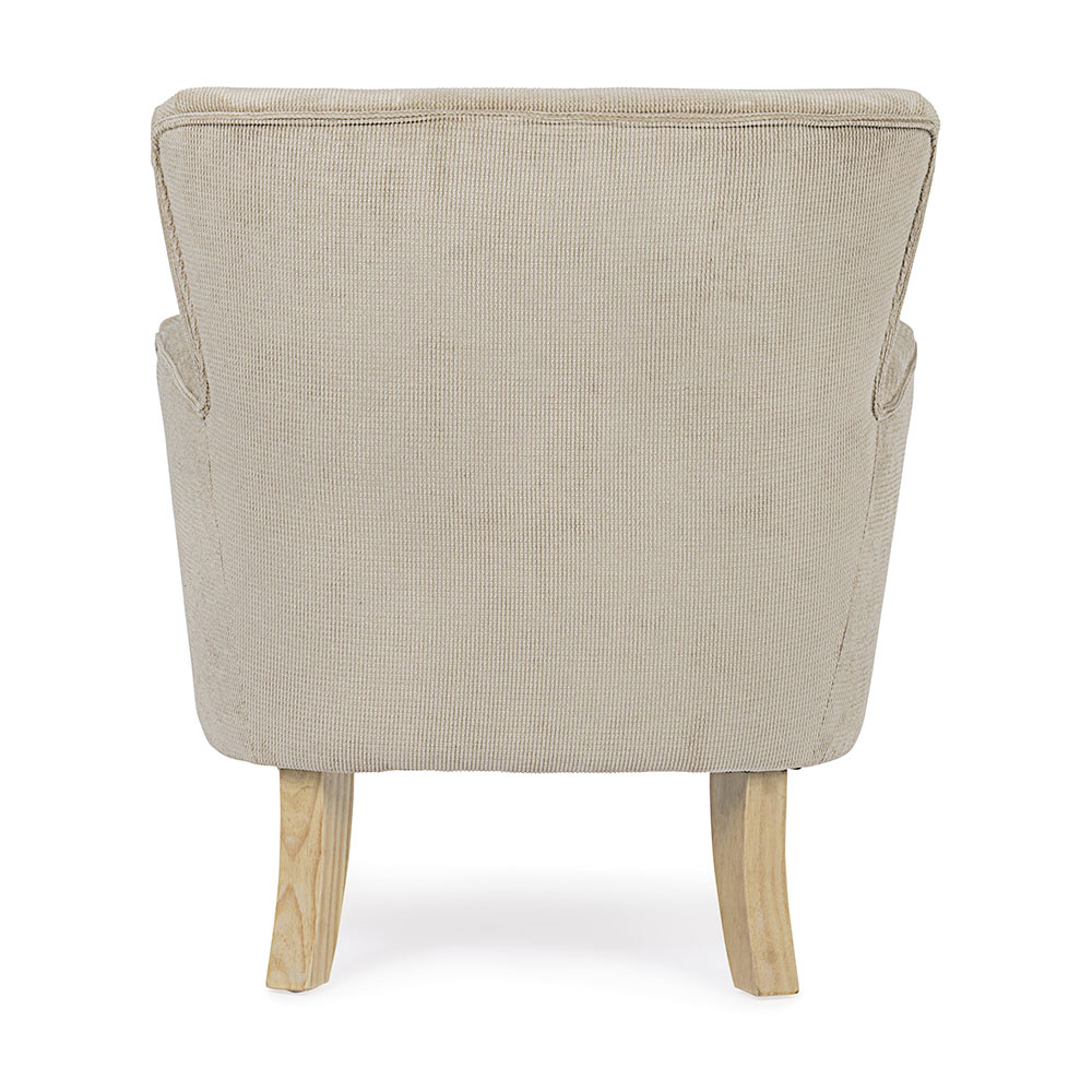 Kolltukë prej druri pishe dhe gome dhe sedilje e veshur me susta me efekt kadifeje në 4 përfundime.