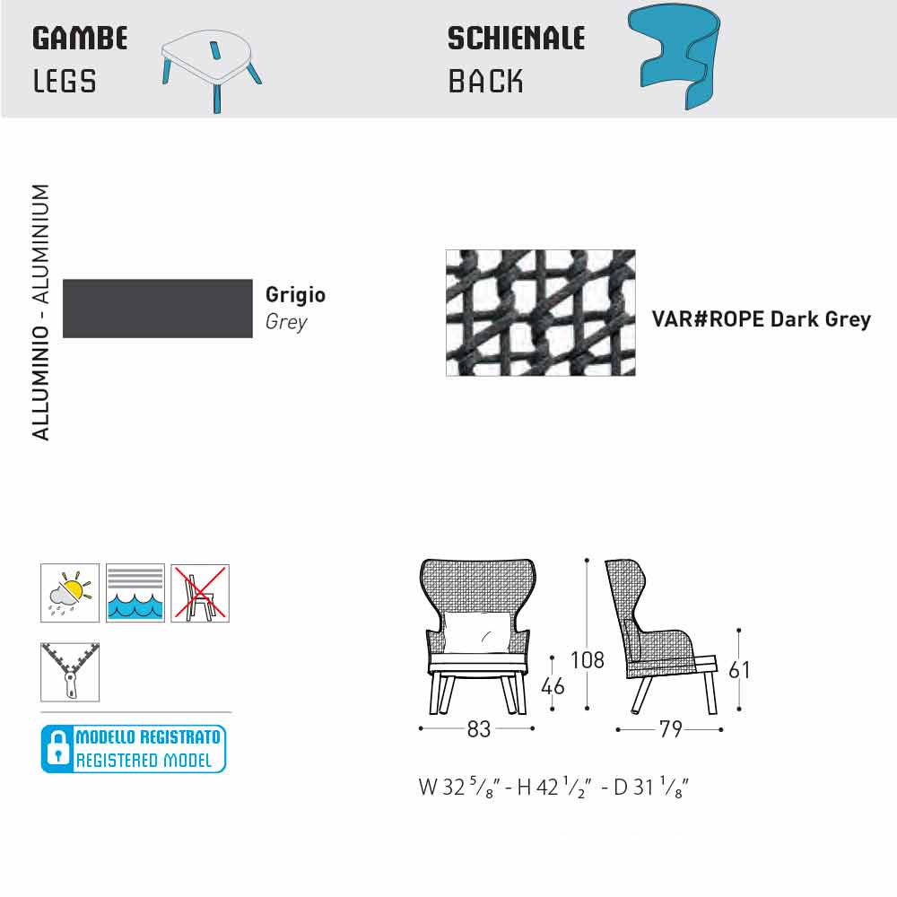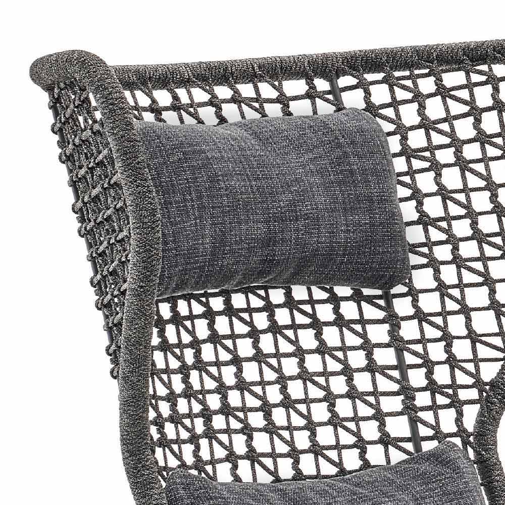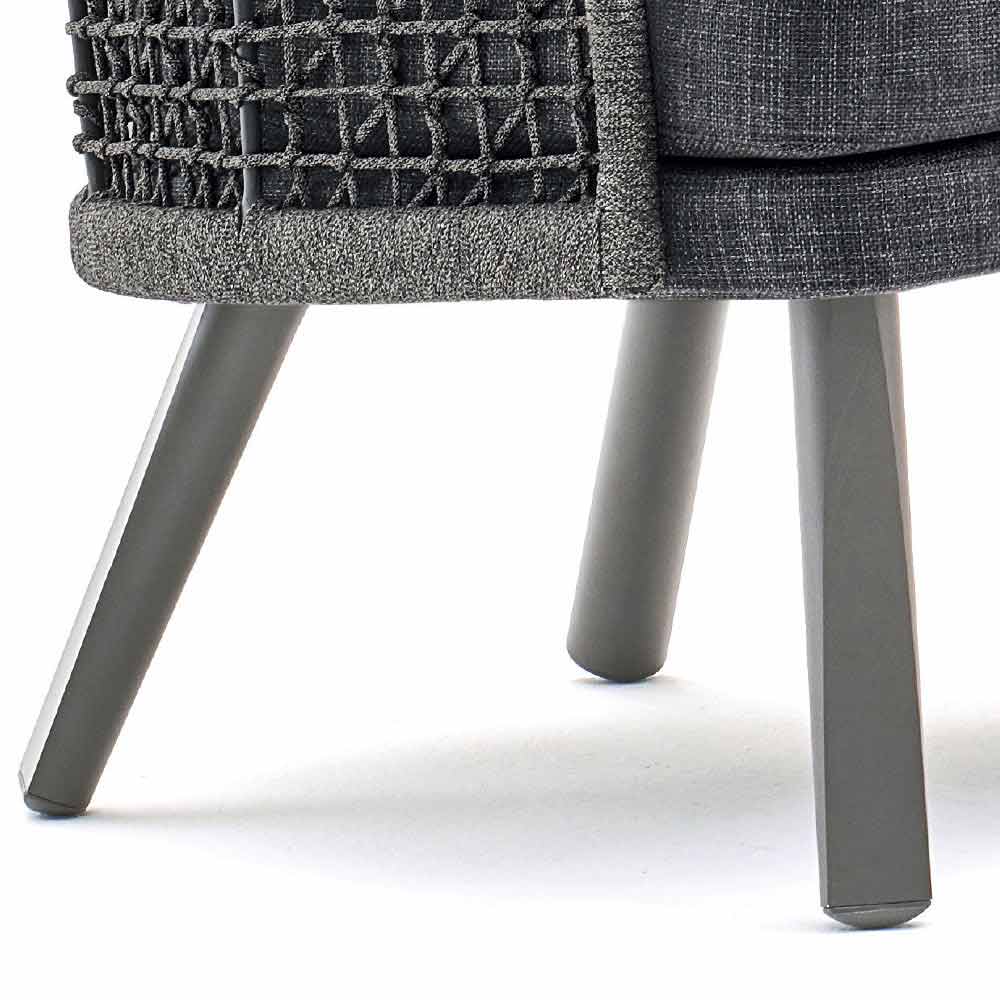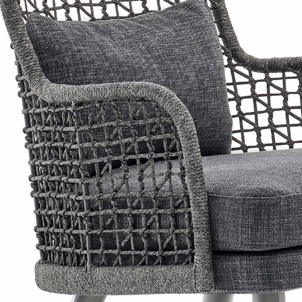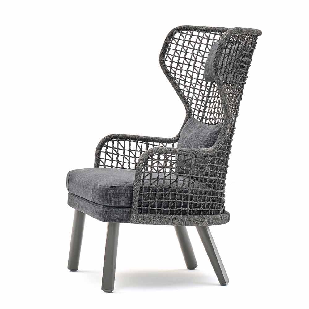 Emma është një kolltuk i mrekullueshëm i kopshtit që përmban një strukturë të bërë nga fibra sintetike të endura me një kornizë alumini të veshur me pluhur gri të errët .