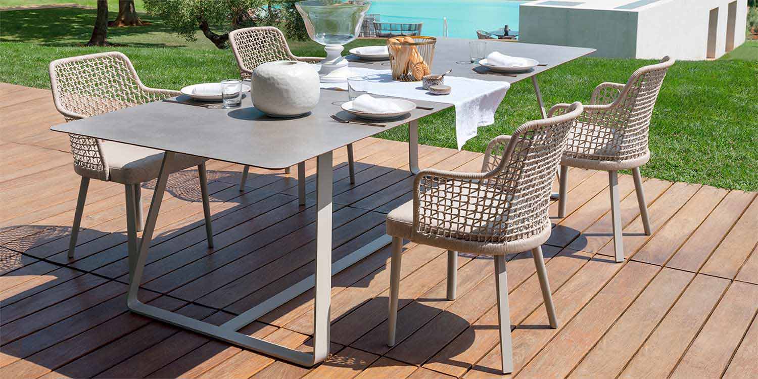 Mirëmbajtja : Koleksioni i reziston rrezet e diellit dhe shiut. Ne rekomandojmë mirëmbajtje të rregullt, dhe vëmendje të veçantë për mbrojtjen e sendeve në rast të kushteve të motit të pafavorshëm (akull, breshër, ndryshime të temperaturës, lagështi, këmbëngulës, nxehtësi djegëse ose ftohje ekstreme). Kohëzgjatja dhe integriteti i këtyre artikujve varen nga kujdesi me të cilin mirëmbahen. Për produktet e aluminit dhe çelikut, megjithëse mbrohen nga trajtime dhe përfundime të përshtatshme për përdorim në natyrë, është thelbësore të parandaloni që uji të ngecë brenda vetë produktit. Në fakt, të gjitha artikujt kanë vrima teknike të nevojshme për aplikimin e trajtimeve mbrojtëse dhe përfundon. Futja e ujit në ato vrima dhe ngecja e tij mund të shkaktojnë ndryshk brenda tubave.