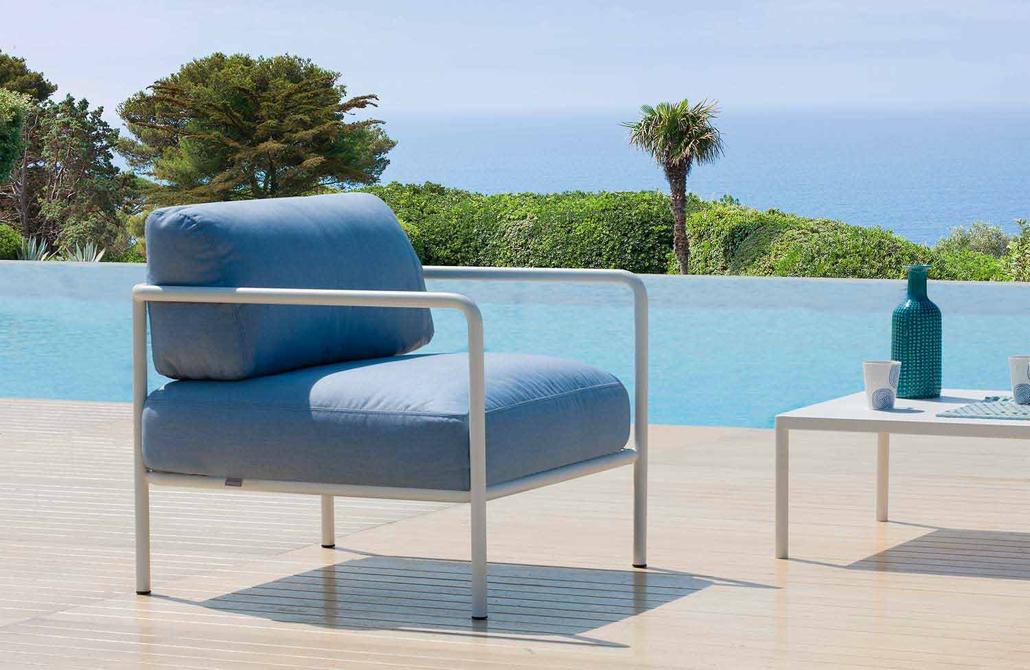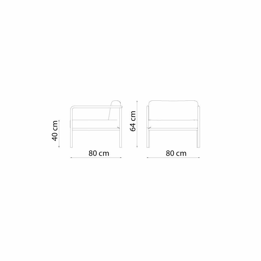 Kolltuk për jashtë i prodhuar në Itali me lëndë të para të përzgjedhura për t'i garantuar klientit një produkt përfundimtar të karakterizuar nga qëndrueshmëri e shkëlqyer me kalimin e kohës dhe rezistencë ndaj të gjithë agjentëve atmosferikë, si dhe njollave, mykut dhe rrezeve UV. Struktura dhe mbështetëset e krahëve të saj janë bërë prej hekuri të galvanizuar me pluhur të lyer me pluhura termoreaktive, ndërsa ndenjësja dhe jastëku i shpinës janë bërë prej pëlhure akrilike 100% të lyer. Këto dy materiale të përdorura së bashku i japin produktit soliditet pa lënë pas dore aspektin vizual dhe dekorativ. Ideale për të kompletuar mobiliet e ambienteve të jashtme që kërkojnë elegancë dhe personalitet falë linjave minimale që e bëjnë atë një objekt me një dizajn unik.