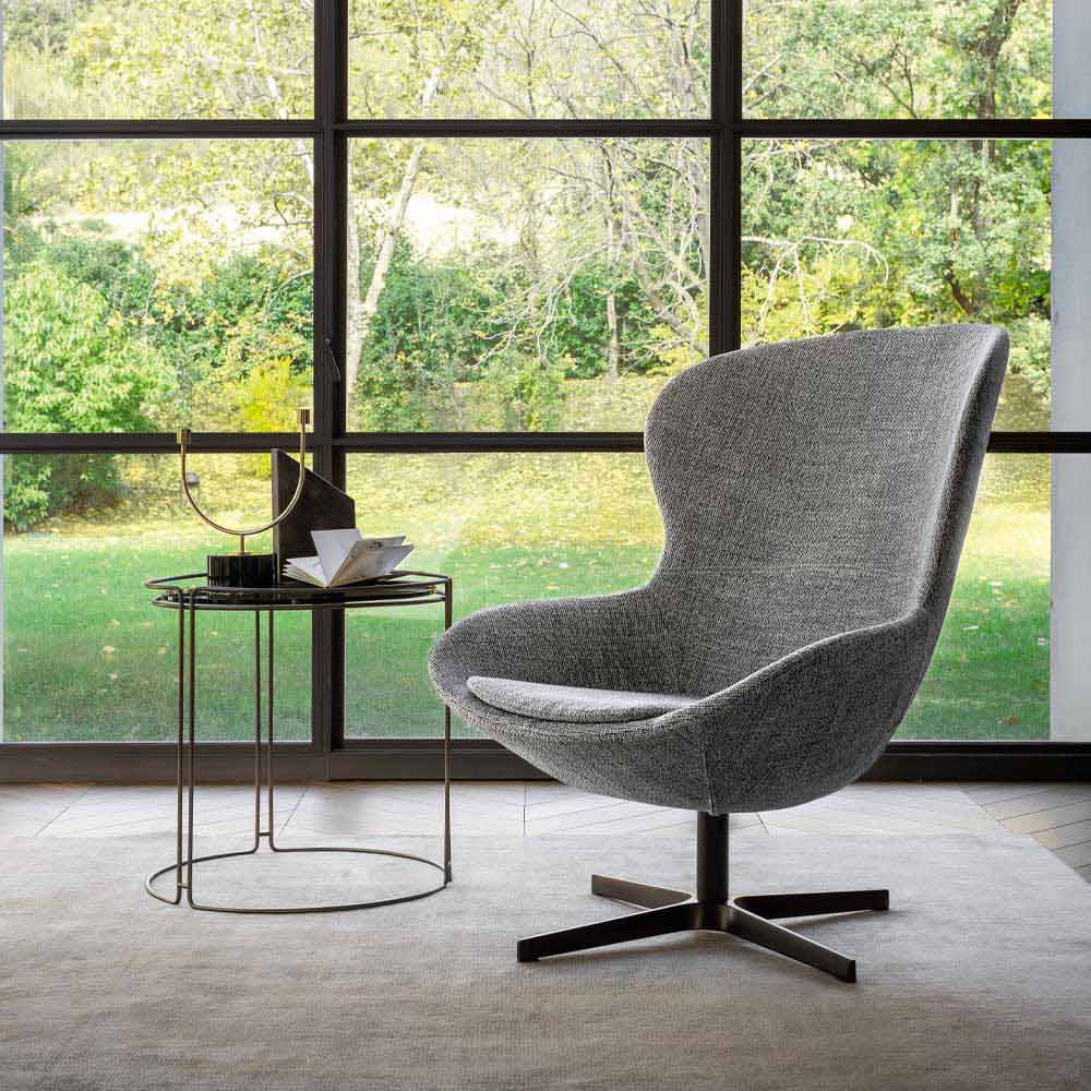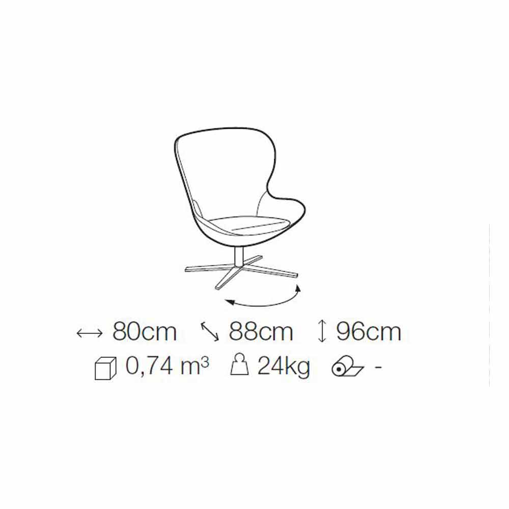 Kolltuk i dhomës së ndenjes prodhuar në Itali me bazë kthyese në fund të antracitit metal i llakuar dhe sedilje e mbuluar me pëlhurë me jastëk të lëvizshëm në të njëjtën ngjyrë të mbushur me shkumë poliuretani jo-deformues (dendësia 30 kg / m³). Struktura e tij karakterizohet nga forma të buta dhe mbështjellëse dhe nga përmasa imponuese por të kalibruara, të dizajnuara për t'i dhënë jetë një ndjenje të fortë mirëseardhjeje. Baza e veçantë e kthyeshme e bën atë edhe më unike dhe të veçantë dhe në të njëjtën kohë veçanërisht të zhdërvjellët , ideale si për zonat e banimit shtëpiak ashtu edhe për ambiente të tilla si zyra ose studio ku sjell me vete një prekje elegante dhe të rafinuar si dhe një shpirt modern të karakterizuar nga një inovacion origjinal.