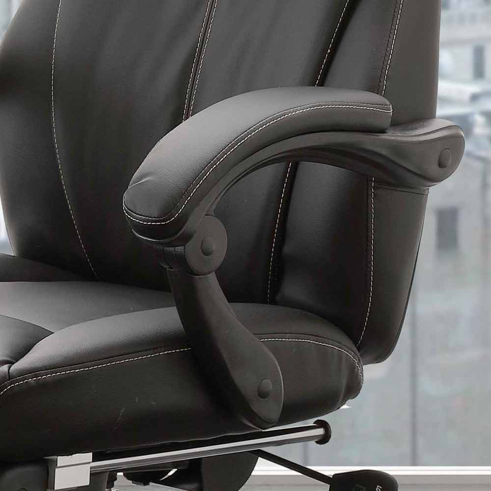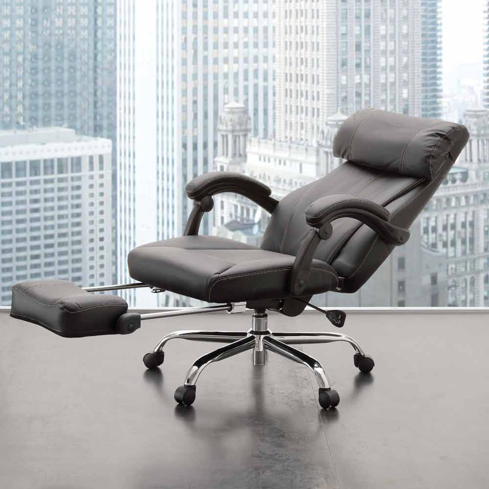 Kolltuku i zyrave Nazzareno përfaqëson më së miri të gjitha këto cilësi; ajo vjen me një vend të kthyeshëm me ngritës gazi, mbështetëse mbështjellëse me jastëk të mbuluar me lëkurë të zezë faux, vende dhe mbështetëse në lëkure të zezë faux; kornizë metalike e kromuar me rrota.