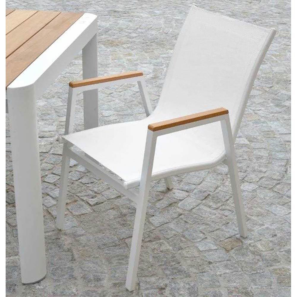 Ky kolltuk me kornizë alumini i veshur me pluhur kombinon stilin dhe funksionalitetin, perfekt për të kompletuar çdo hapësirë moderne të jashtme. Pëlhura e tekstilit siguron rezistencë ndaj elementeve dhe rehati afatgjatë, ndërsa futjet prej druri në mbështetëse të krahëve shtojnë një prekje ngrohtësie dhe elegance.