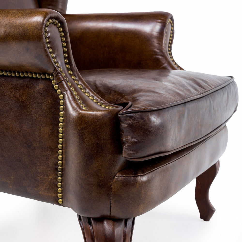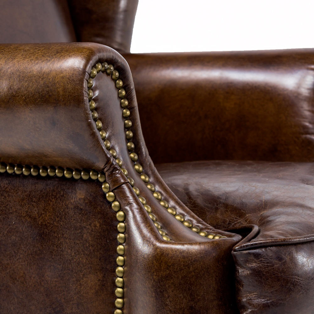Kolltuku i dhomës së ndenjes me lëkurë të vërtetë kafe të errët , me stil klasik anglez.