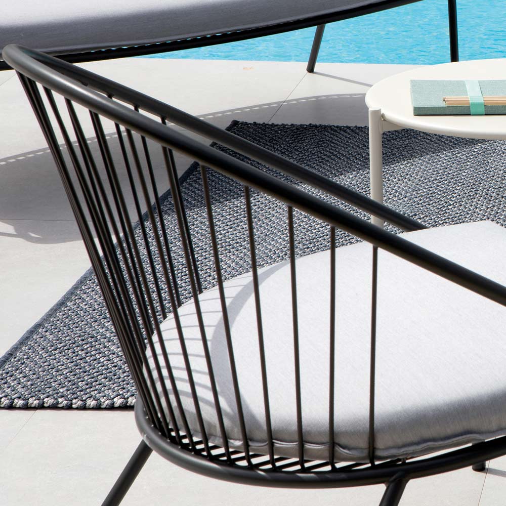 Kolltuk për mobilje të jashtme i prodhuar tërësisht në Itali, prej çeliku të galvanizuar . Përpunimi i çelikut lejon rezistencë të shkëlqyer të sipërfaqes ndaj korrozionit nga agjentët atmosferikë, siç janë aciditeti i shiut ose kripa, duke e bërë kolltukun një element të përsosur për të mobiluar çdo hapësirë të hapur.