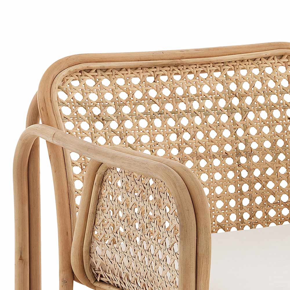 Elegant por rustik, ky kolltuk është ideal për t'i dhënë një prekje stilit bohem hapësirës tuaj të jashtme. Çdo detaj, nga kthesat harmonike të thurjes deri tek mbështetësit e fortë të krahëve, është kujdesur për të krijuar një atmosferë ngrohtësie dhe mirëseardhjeje . Pavarësisht nëse është një kënd i qetë në tarracën tuaj ose si pjesë e një mjedisi të gjallë dhe komod, ky kolltuk bastun prej palme kacavjerrëse është vendi ideal i takimit për ata që kërkojnë elegancë të përjetshme dhe rehati autentike .