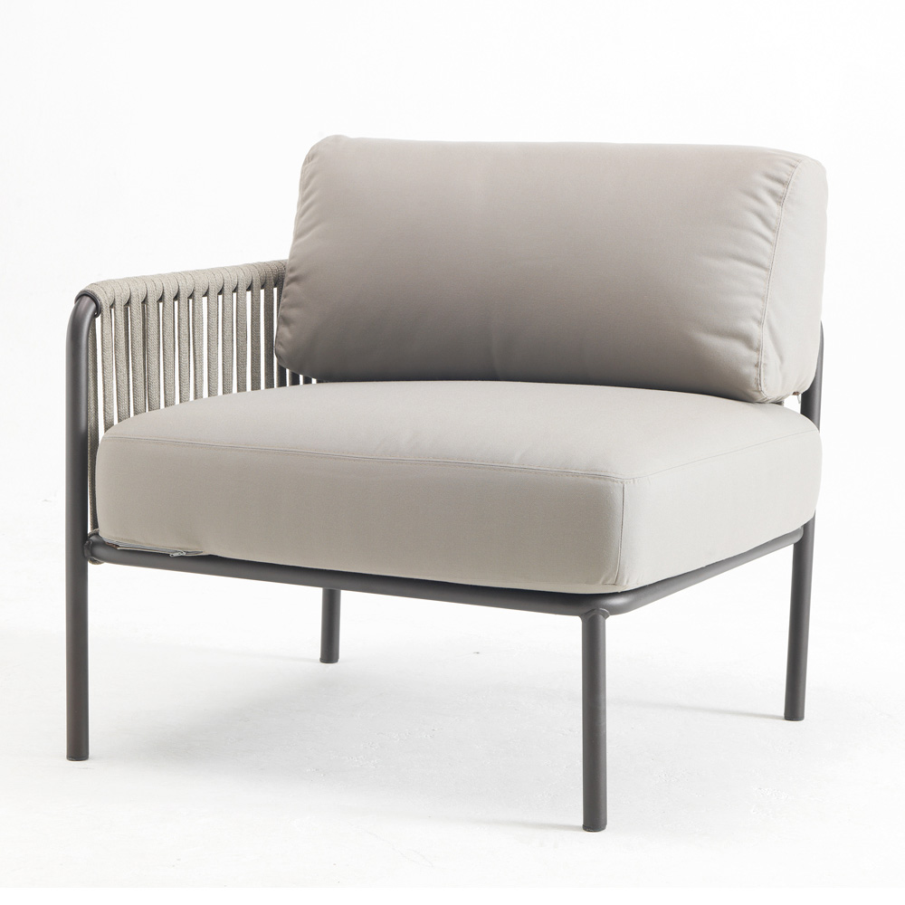 Kolltuk për jashtë prej çeliku dhe litari me jastëkë. Prodhuar në Itali.
