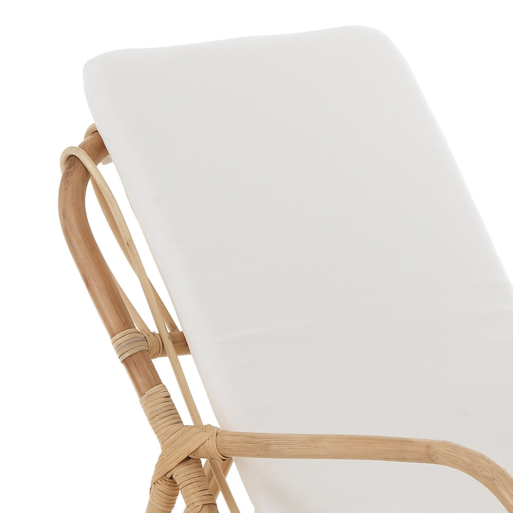 Kjo karrige e lehtë është mishërimi i paqes dhe rehatisë . Me strukturën e saj prej bastun prej palme kacavjerrëse, e cila kujton bukurinë dhe thjeshtësinë e natyrës, dhe jastëkët e butë prej pambuku, ofron një oaz qetësie dhe një prekje elegante stili . E përkryer për t'u çlodhur, kjo karrige e lehtë është projektuar për të shtuar një dimension të rehatisë absolute në hapësirën tuaj të jashtme.