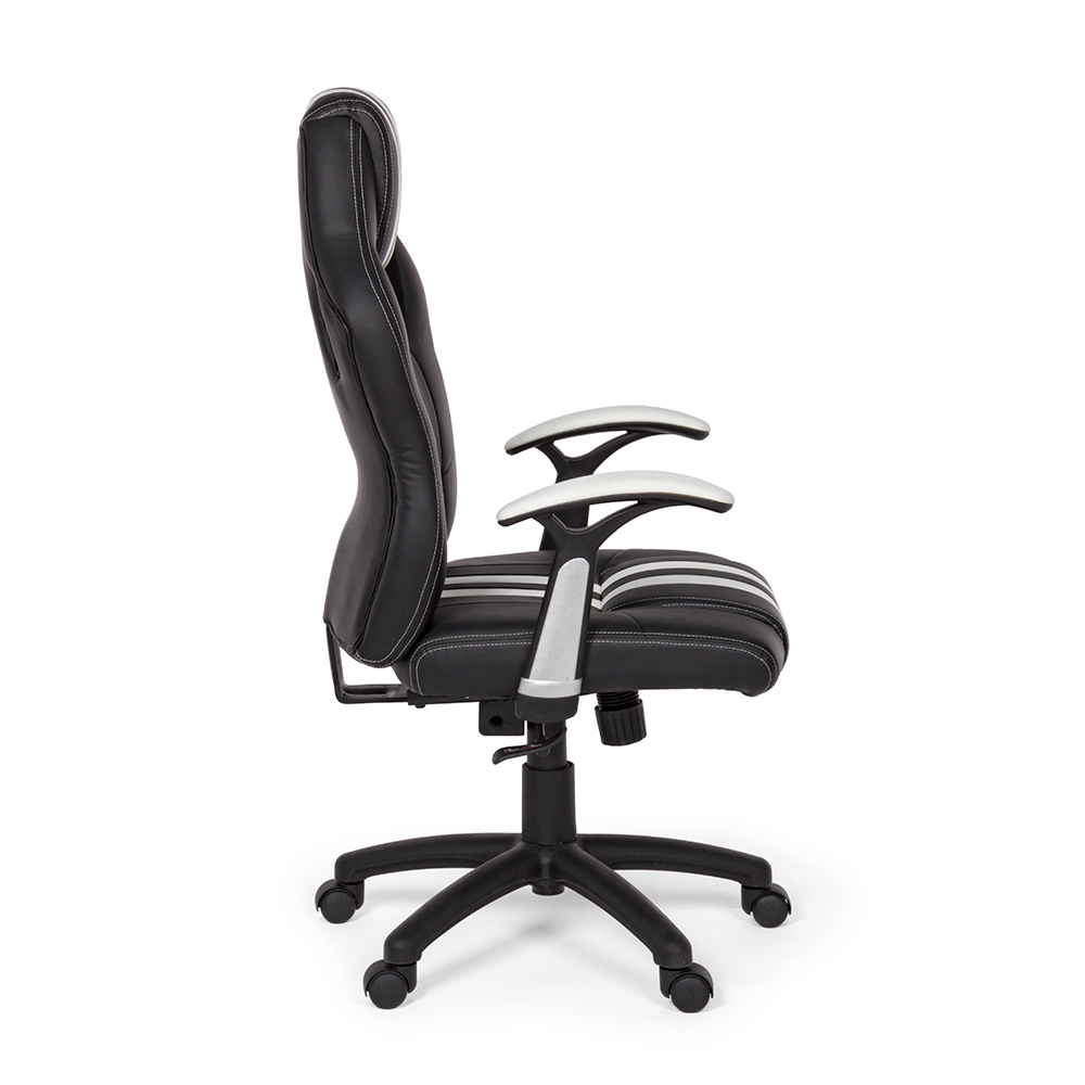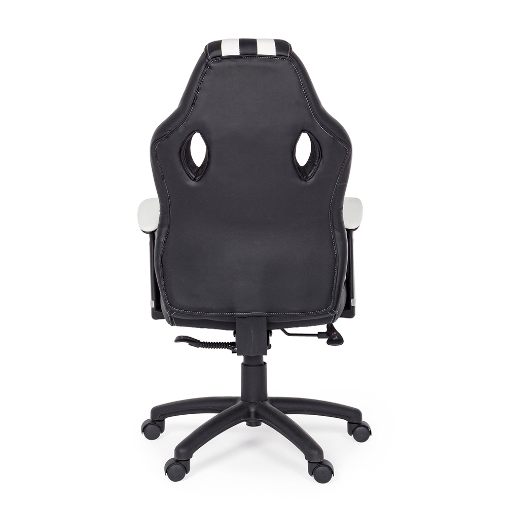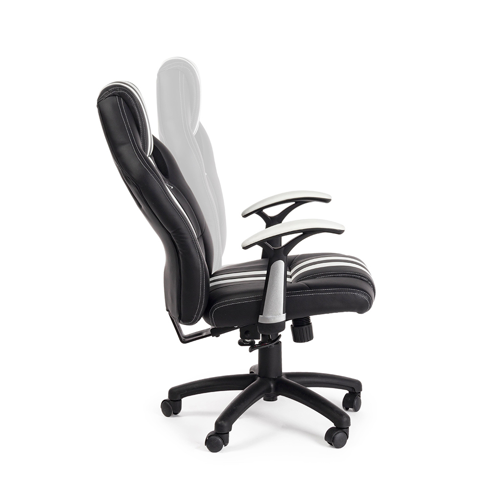Kjo karrige zyre është bërë me bazë najloni solid me diametër 60cm dhe rrota najloni . Atysedilje me lartësi të rregullueshme dhe mbështetëse të mbështetur deri në 130 °me sistem bllokuato janë të mbushura dhe të mbuluara me lëkurë imituese për të siguruar rehati maksimale. Mbështetësit e krahëve prej çeliku të veshur me pluhur me tapiceri prej lëkure dhe mbështetësja e shpinës me mbështetje mesit plotësojnë dizajnin.