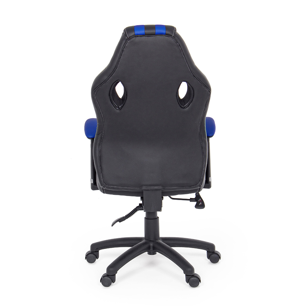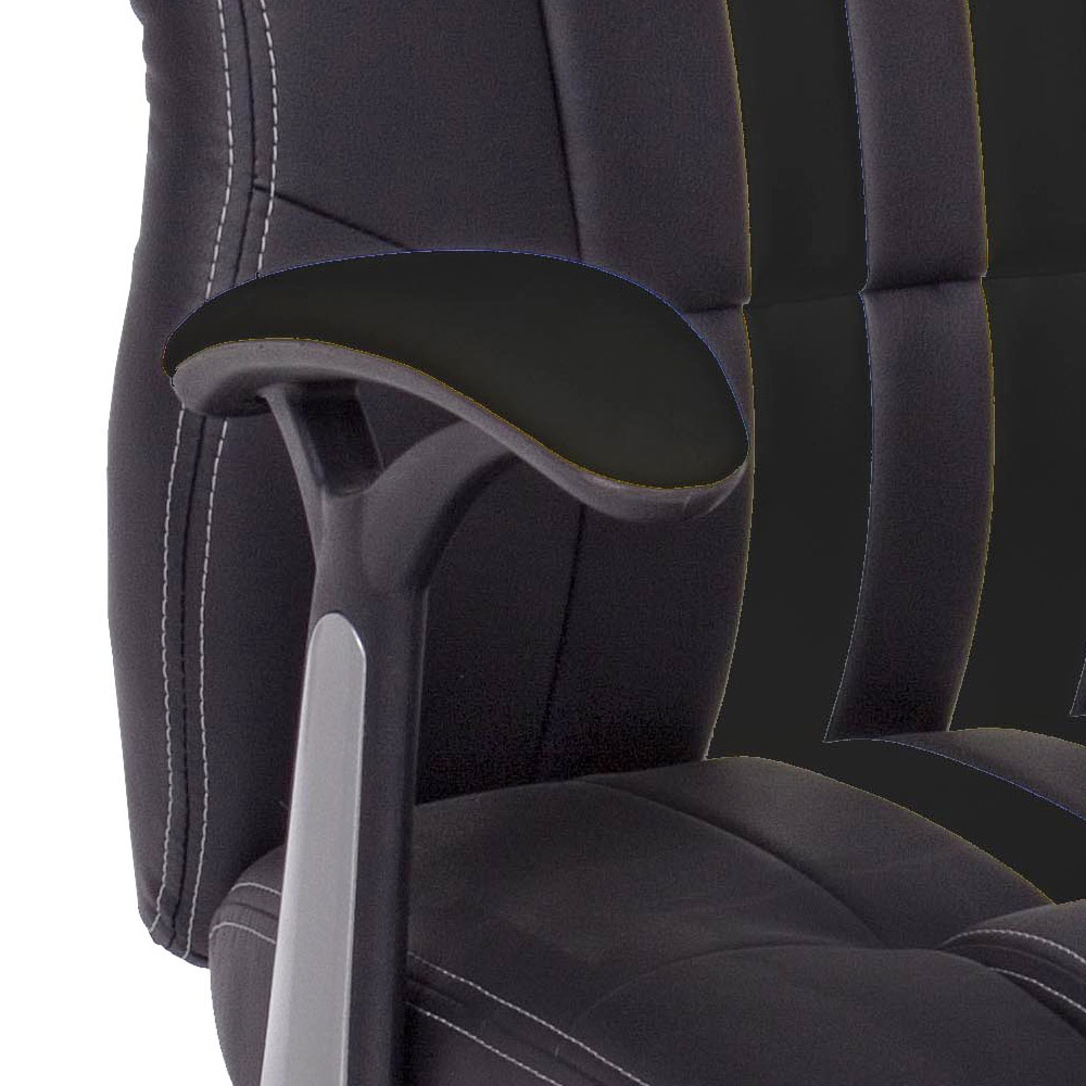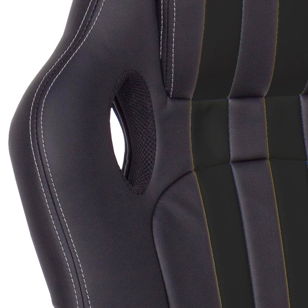 Kolltukë zyre e rrotullueshme dhe e shtrirë prej najloni dhe eko-lëkure e zezë me detaje ngjyrash.