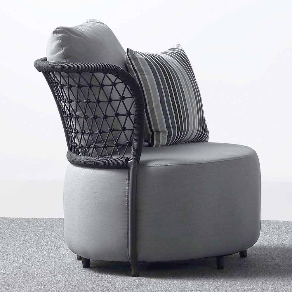 Kolltuk kopsht i bërë nëalumini i pikturuar errjeti i përfundimit të antracitit me jastëk sediljeje dhe shpine të mbuluar me pëlhurë gri-i cili heq ujërat . Ideale për t’i dhënë jetë një orendi moderne dhe ekskluzive , kjo shtesë plotëson të gjitha karakteristikat themelore të kolltukut të përsosur në natyrë pasi siguron një vend të rehatshëm dhe veçanërisht mikpritës së bashku me një dizajn inovativ me një shije origjinale . Kombinimi i paparë i materialeve dhe teksteve të ndryshme gjithashtu i jep një personalitet të fortë estetikës së produktit, duke e pasuruar atë në një mënyrë unike dhe avangarde.