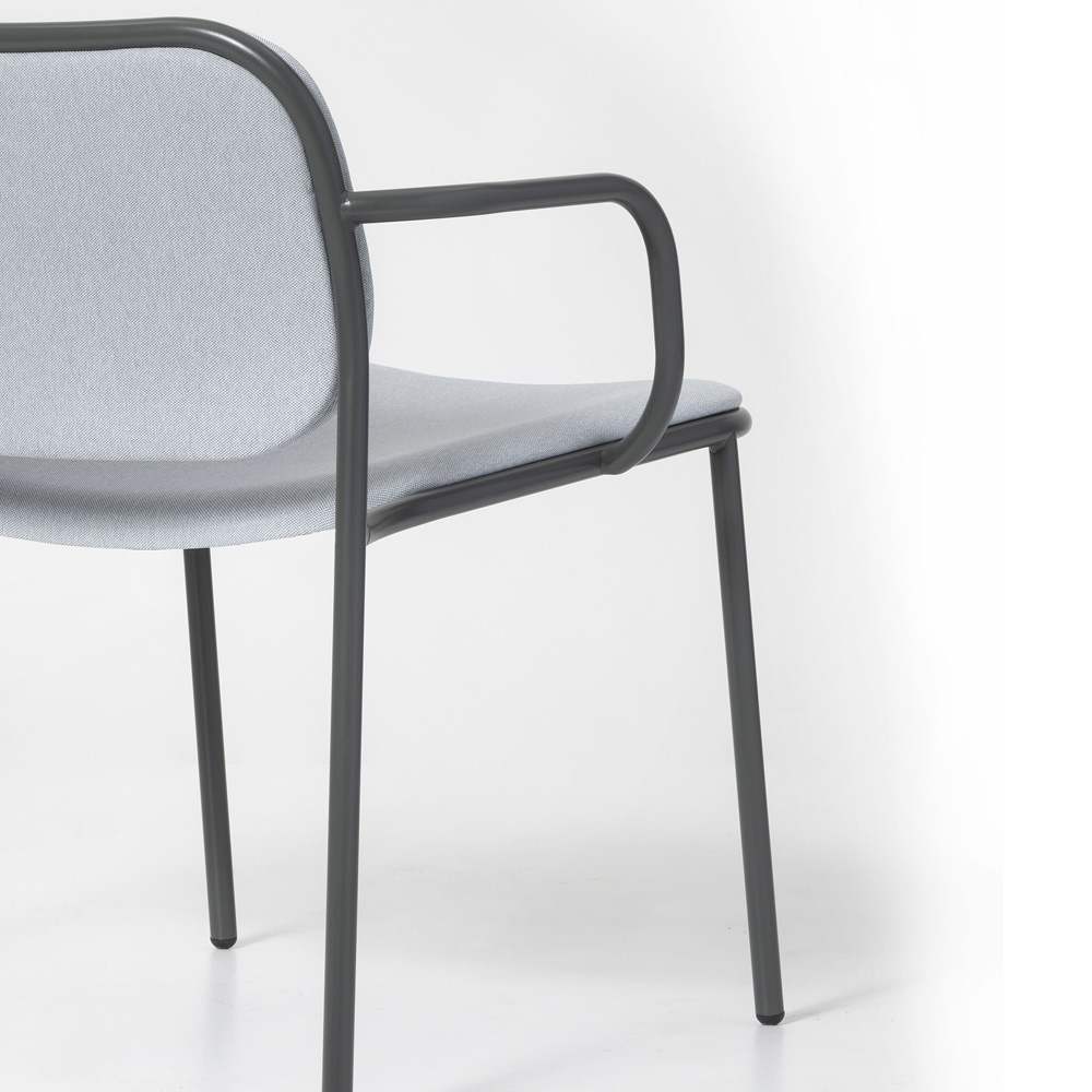 metal të lyer e kompletuar me mbështetëse krahësh praktike dhe sedilje dhe mbështetëse të veshur me susta të mbuluara me