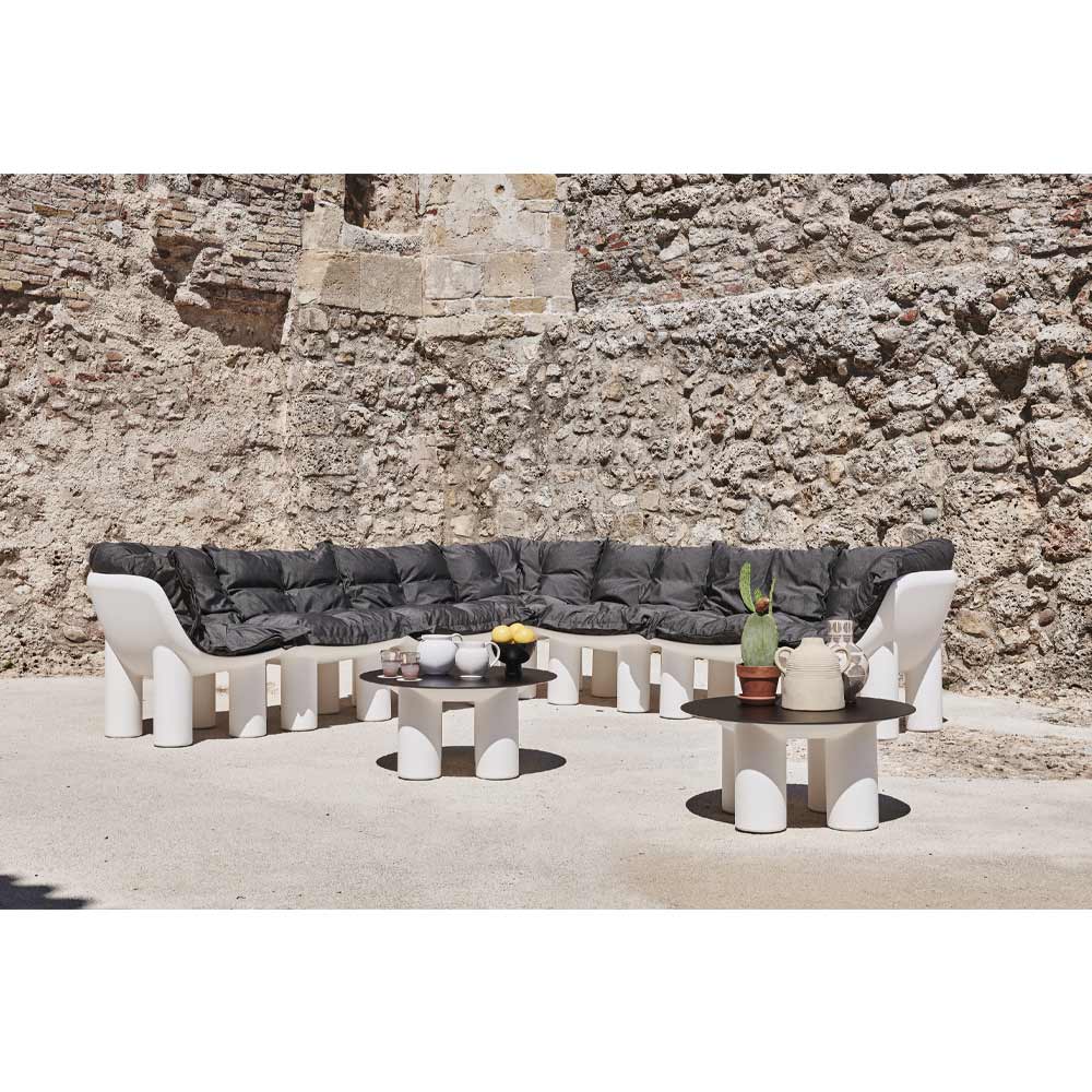 Kolltuk qoshe në natyrë nga polietileni i errët me jastëk në pëlhurë Made in Italy.