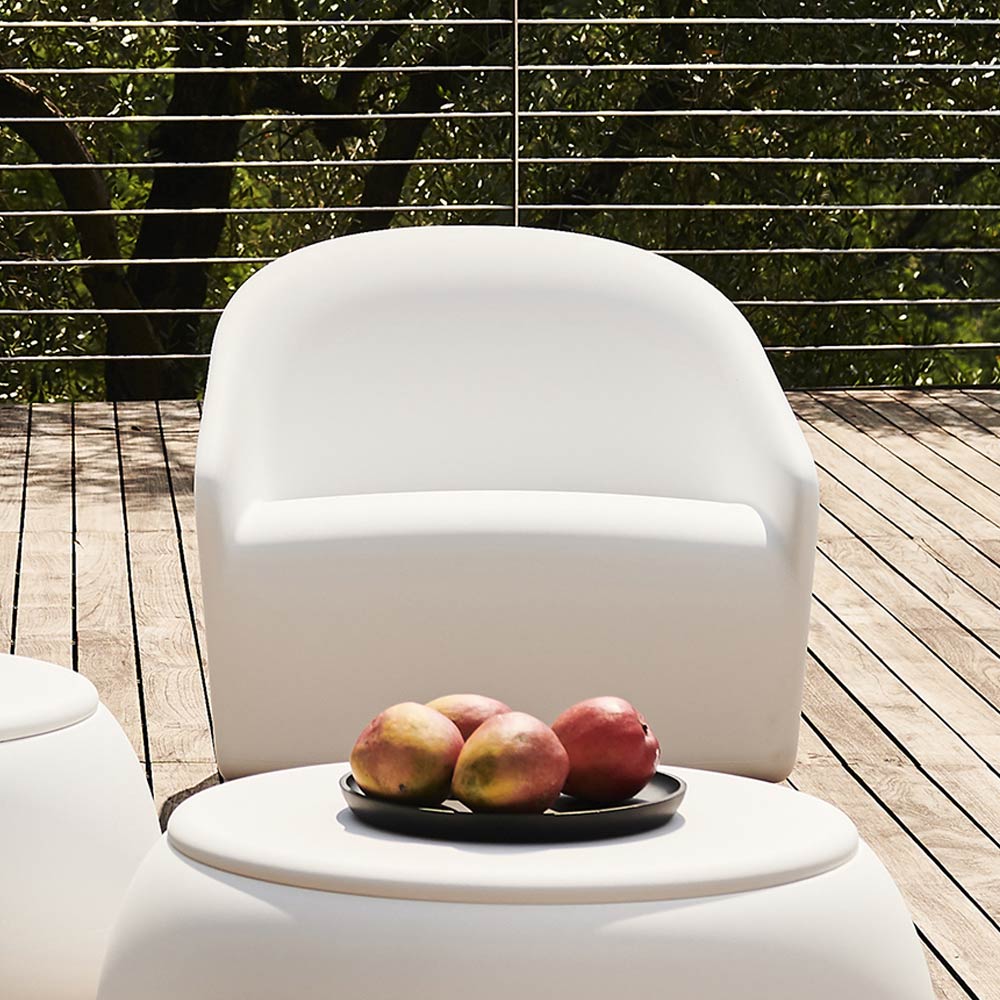 polietileni me ngjyrë me përfundim mat. Një pjesë e mobiljeve që sjell në mendje temperaturat e buta dhe klimën e qiejve të kthjellët e karakterizuar nga një formë veçanërisht sinuze dhe e nënvizuar nga