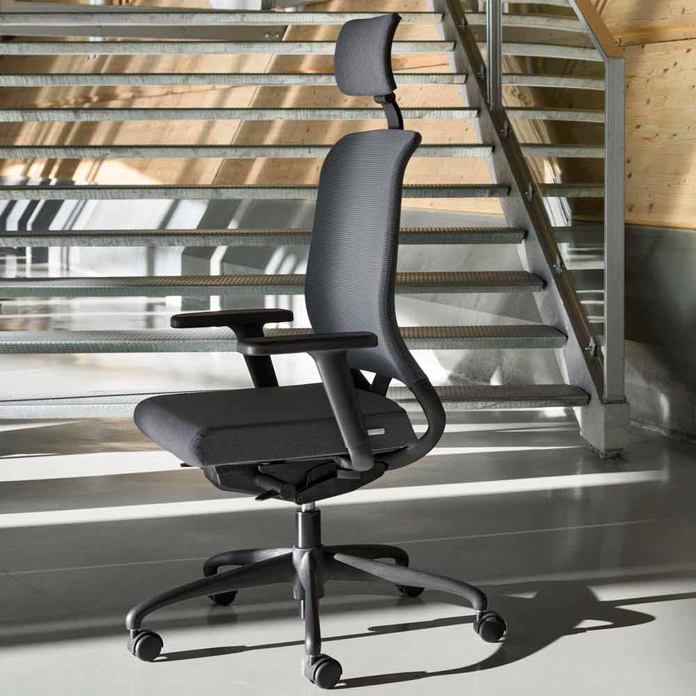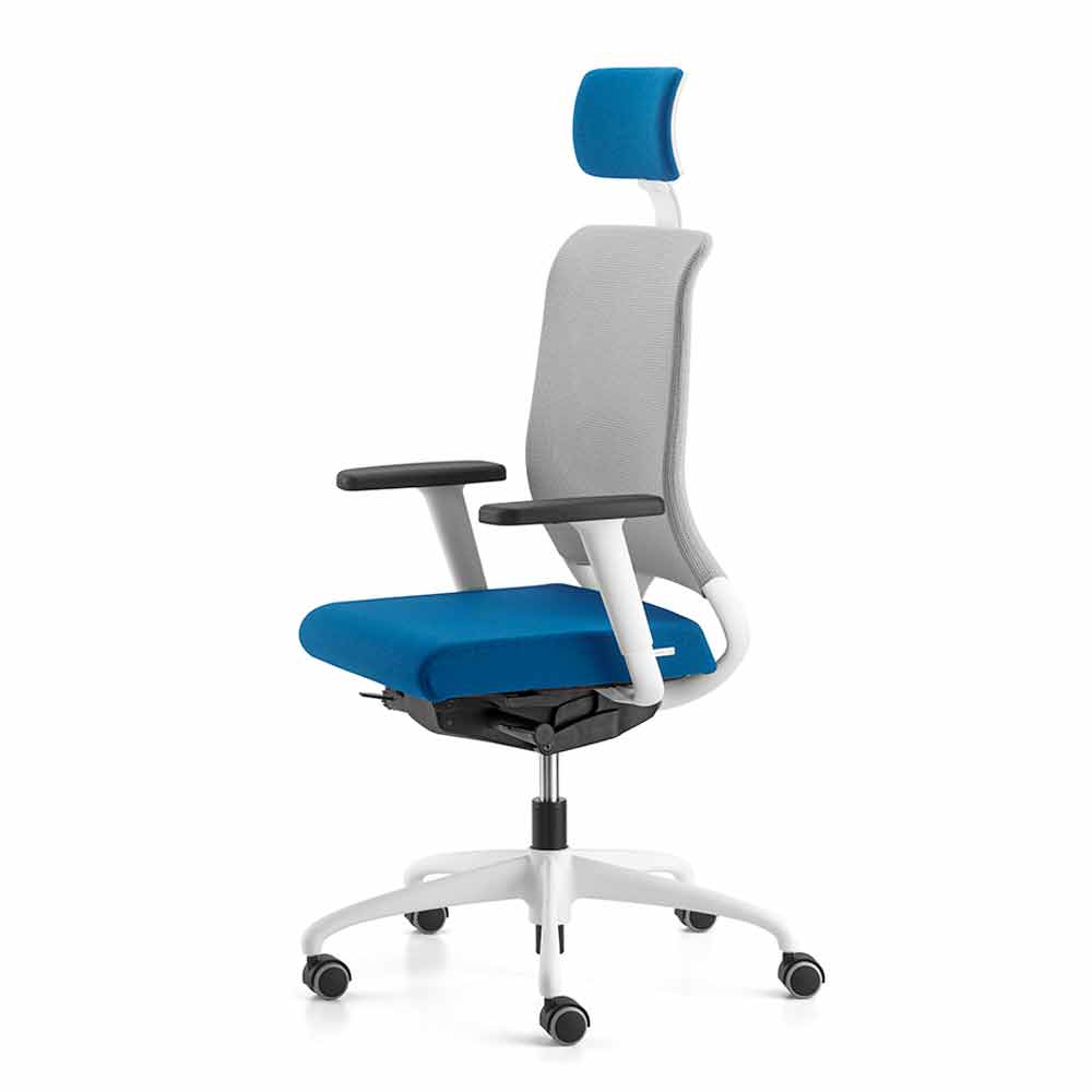 Kolltuqe zyre ekologjike, ergonomike, e kthyeshme, me mbështetëse për krahë dhe mbështetëse koke të prodhuara në Itali.