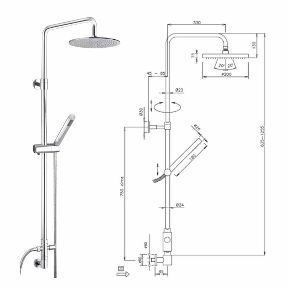 Kolona dushi prej bronzi e kromuar me kokë dushi ABS dhe dush dore Made in Italy.