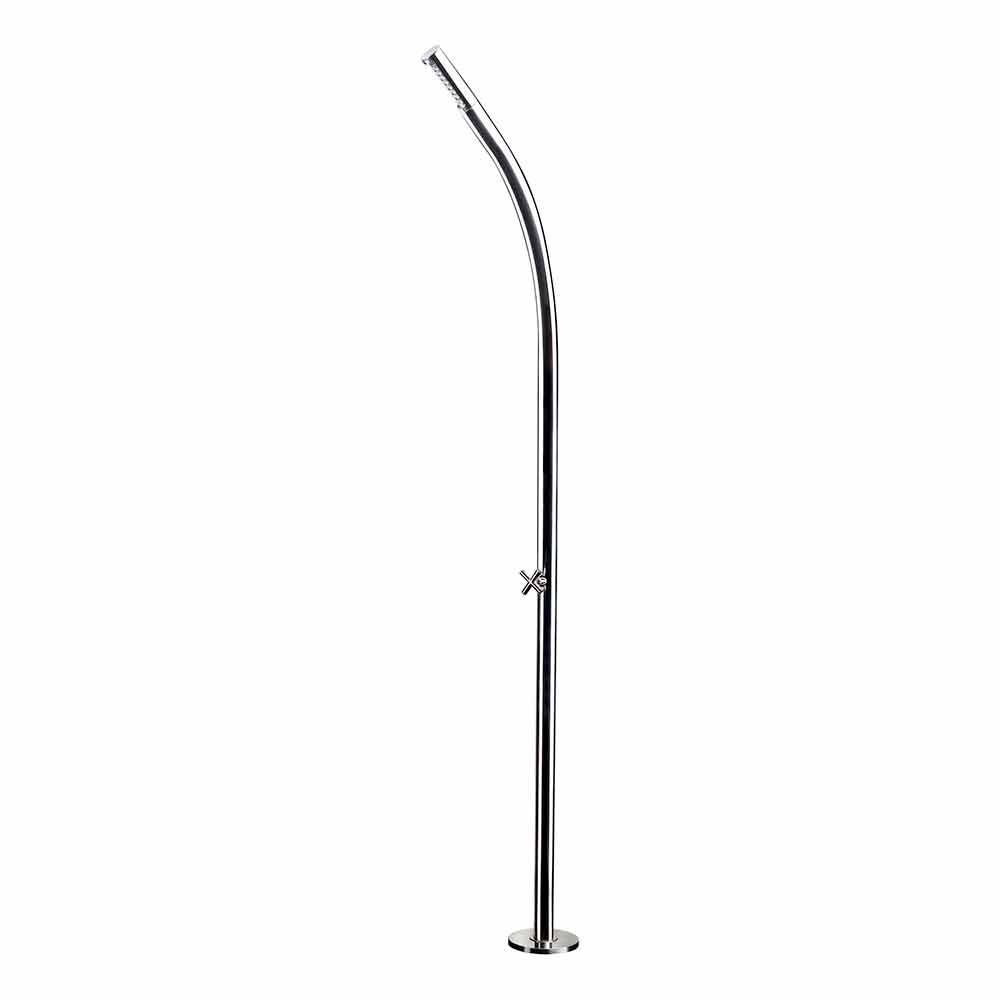 Kolonë dushi për kopsht,e punuar me dorë në Itali me kolonë çeliku inox AISI 316L të lëmuar (2 mm e trashë). Ideale për zonat më të larmishme të jashtme, siç janë vendpushimet në plazh dhe objektet turistike, por edhe mjediset private si pishinat dhe kopshtet, kjo kolonë për jashtë ofron vetëm ujë të ftohtë, duke ju lejuar të shijoni një dush të mrekullueshëm freskues gjatë ditëve veçanërisht të nxehta dhe me diell. Ideja vjen nga një prodhim 100% italian që, falë përdorimit të lëndëve të para me cilësi të lartë , lejon t'i japë jetë një krijimi të punuar me dorë me performanca të larta teknike, të aftë të ofrojë kombinimin perfekt të besueshmërisë dhe dizajnit. Thelbia e linjave të tij rritet nga koka e integruar e dushit që e bën stilin e këtij aksesori për mobilimin e jashtëm edhe më origjinal dhe modern, duke ndihmuar në pasurimin e estetikës së mjedisit përreth me një prekje jashtëzakonisht moderne dhe me cilësi të pakrahasueshme.