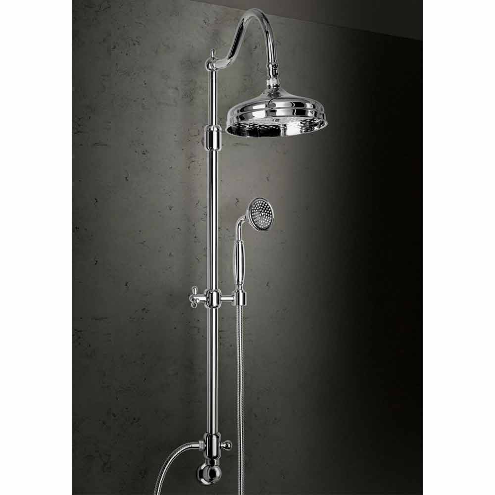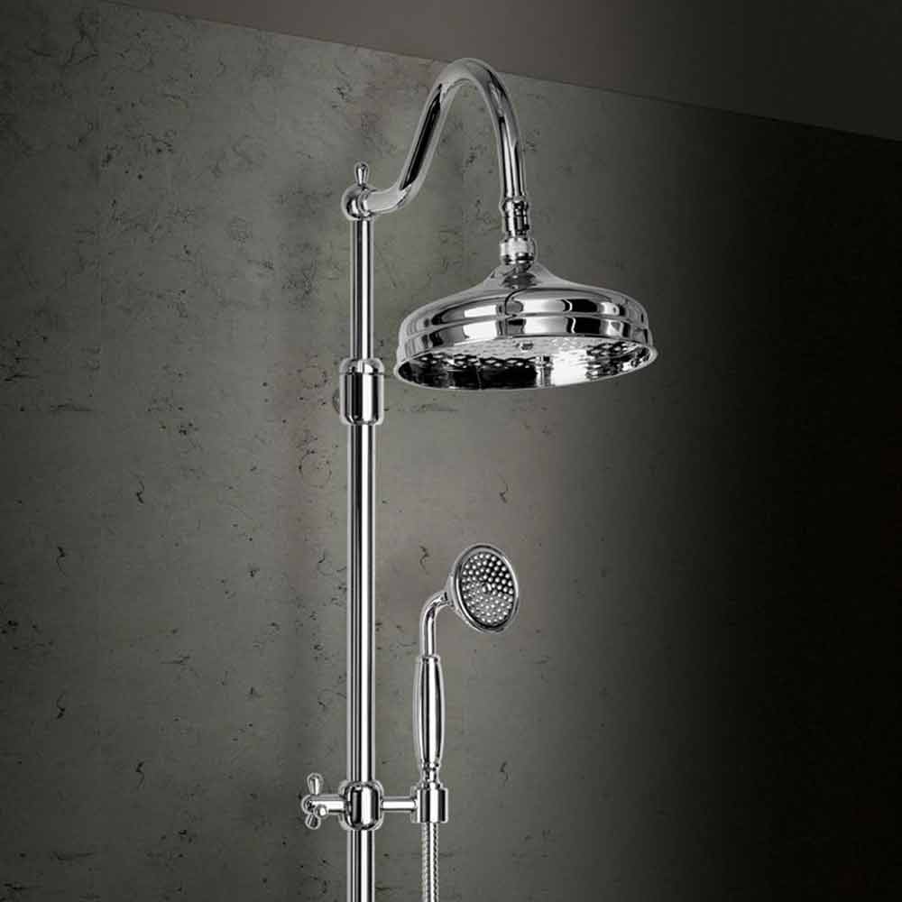 Kolona dushi me dizajn klasik në tunxh me kokë dushi dhe dush dore, artikull i shkëlqyer Made in Italy.