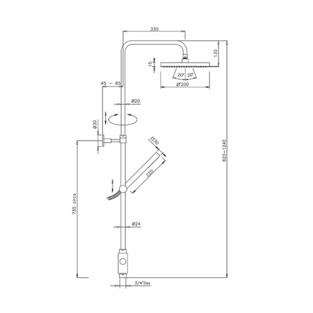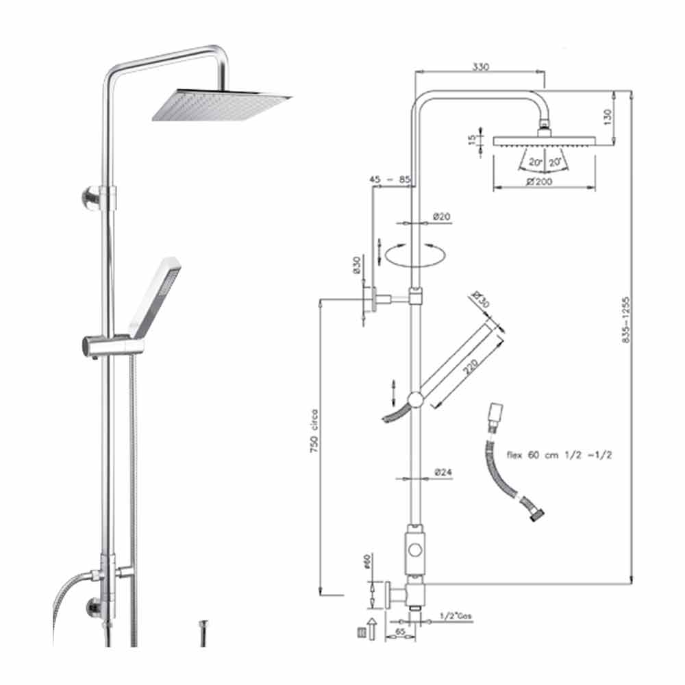 Kolona moderne dushi prej bronzi me kokë dushi ABS dhe dush dore Made in Italy.