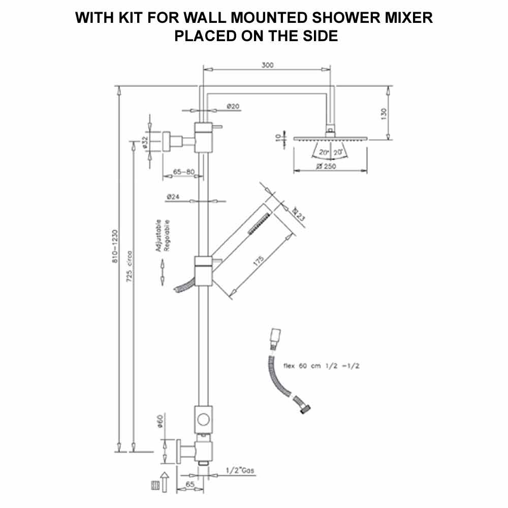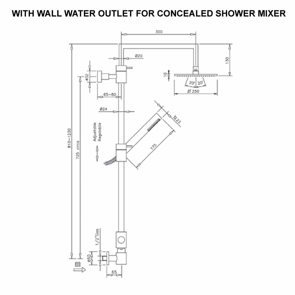 me komplet për mikser të jashtëm katror të dushit të pozicionuar anash;