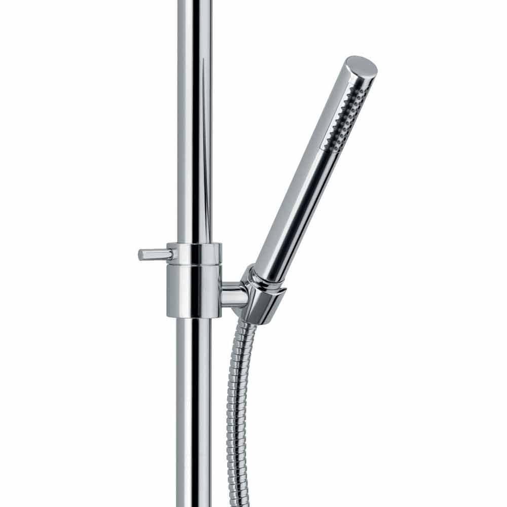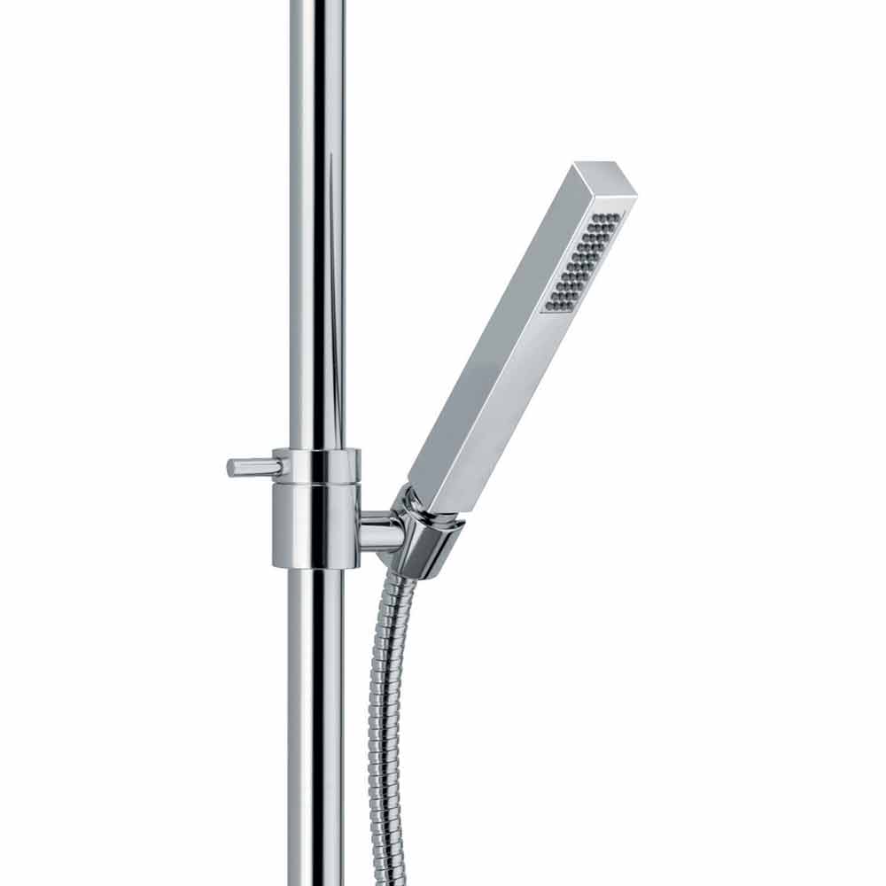 funksionalitet më të madh, duke marrë kështu një kolonë dushi sa më të bukur dhe të rafinuar për t’u parë, aq edhe praktike dhe të lehtë për t’u përdorur. Mbështetja rrëshqitëse ju lejon të rregulloni lartësinë e dushit të duarve, ndërsa zorra 150 cm ju lejon ta përdorni atë në një mënyrë plotësisht të menaxhueshme dhe të rehatshme.