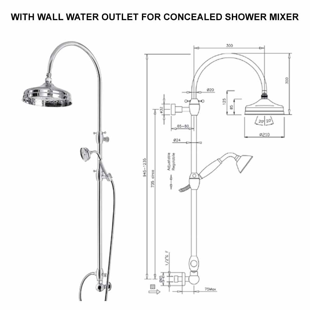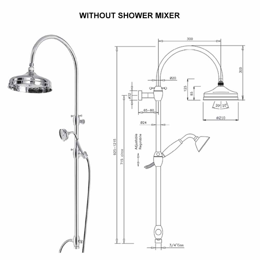 Kolona dushi bronzi me kokë dushi me dizajn klasik dhe dush dore, me cilësi të lartë Made in Italy.