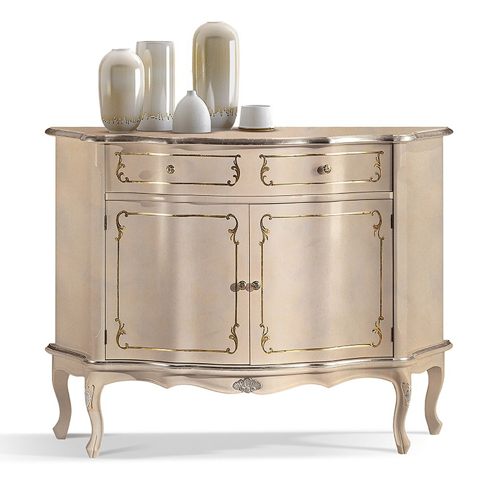 Bofoni i dhomës së ndenjes me stil klasik dhe elegant me 2 dyer dhe 1 sirtar , prej druri dhe i disponueshëm në dekorime të ndryshme për t'u përshtatur më mirë me çdo nevojë mobilimi. Një komplement unik dhe i rafinuar, i bërë tërësisht në Itali nga mjeshtra të aftë , mjeshtër të artit që përfundojnë çdo komplement me mençuri dhe shije për elegancë. Prodhimi kryhet duke përdorur materiale të shkëlqyera , dhe duke kryer punënmedorë me kujdesin dhe profesionalizmin maksimal që i dallon produktet Made in Italy .