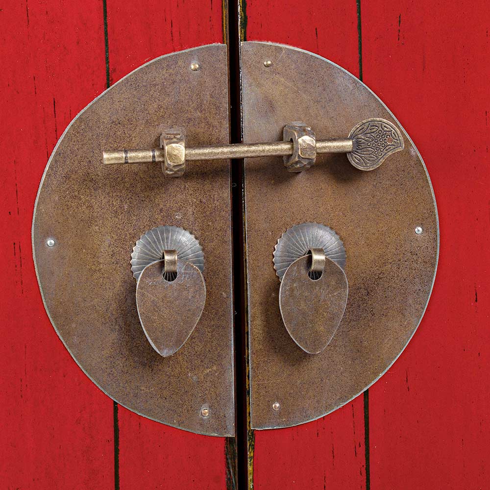Dizajni plotësohet nga dorezat praktike të bakrit të vendosura në 2 dyert për një rezultat të stilit vintageme një prekje etnike.