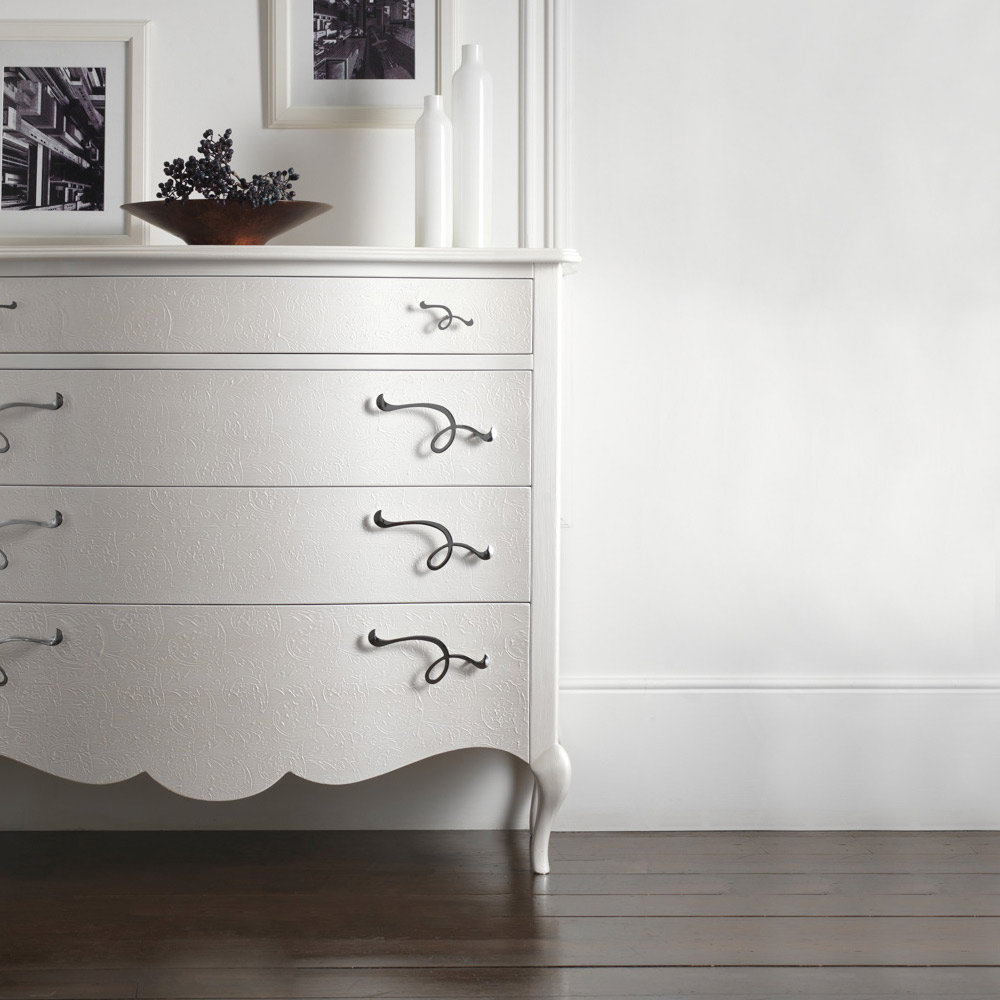 Komodinë e bërë nga dërrasa Linden me finiturë artizanale nënë e perlës, e përbërë nga 4 sirtarë me doreza të kromuar. Mjeshtrit ekspertë italianë janë kujdesur për çdo detaj dhe kanë përzgjedhur materialet për të garantuar cilësinë e Made in Italy . Linjat e buta, të përkulura dhe përfundimet e shkëlqyera krijojnë elementë që plotësojnë dhe i japin një prekje unike mjedisit, duke u ofruar klientëve kapacitet dhe funksionalitet të madh.
