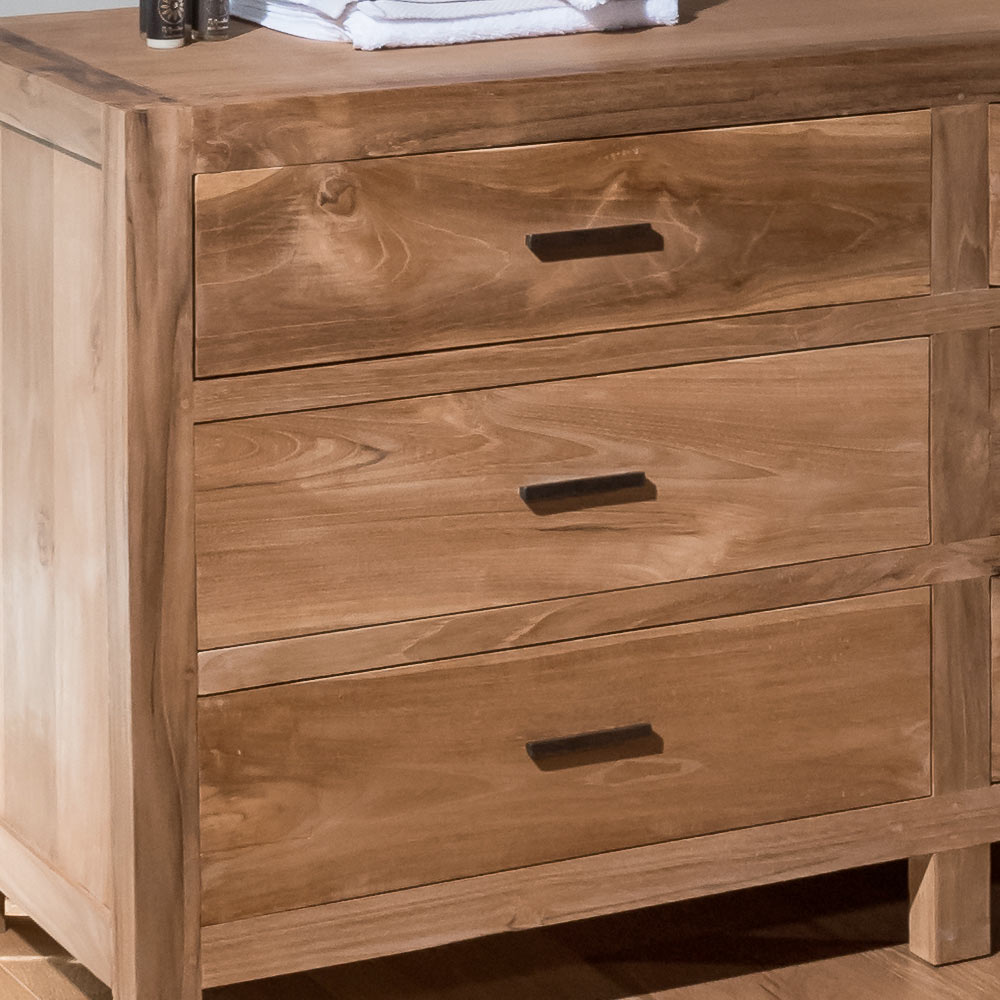 Kjo komodinë prej druri të fortë tik është një pjesë e fortë dhe elegante, ideale për të dekoruar dhomën tuaj të gjumit ose dhomën e ndenjes me stil. Mjeshtëria dhe fibrat natyrale të drurit i japin asaj një pamje të ngrohtë dhe autentike, të aftë të përmirësojë çdo hapësirë.