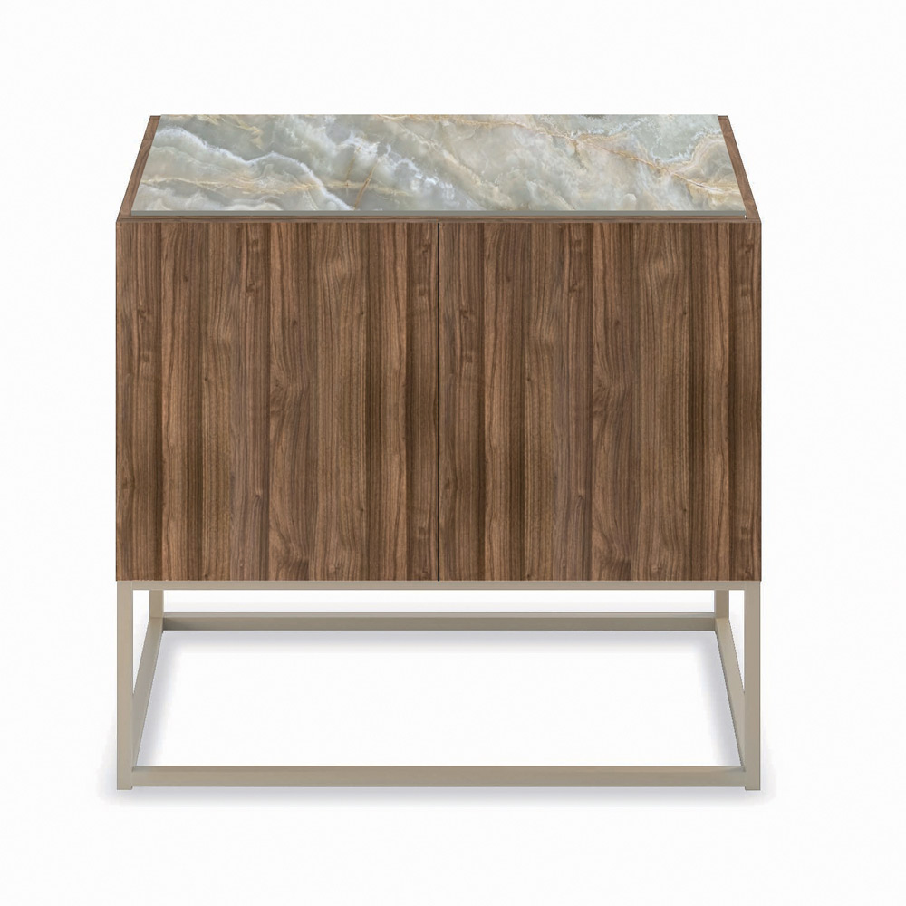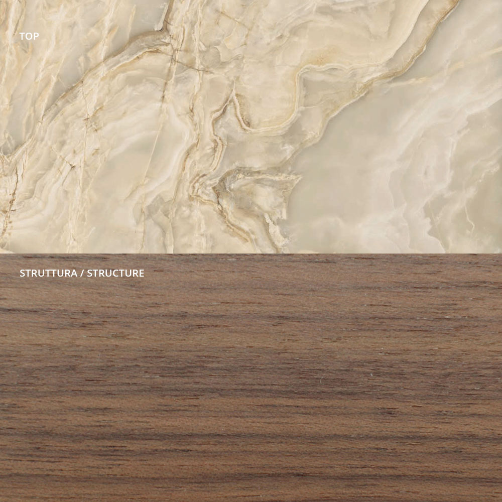 Bofoni i dhomës së ndenjes i bërë tërësisht nga blloqe bredhi me trashësi 18 mm të rimeso brenda dhe jashtë në arrë Canaletto të lyer në fundin e arrës Canaletto. Paneli i pasmë i përforcuar dhe i përfunduar dhe pjesa e sipërme prej qeramike . Dyer me hapje shtytëse dhe tërheqëse . Baza është në çelik shampanjë me këmbë të rregullueshme. Ky komplement dekorativ elegant për zonën e ndenjes ofron funksionalitet të madh si dhe një estetikë magjepsëse dhe të përjetshme , duke u dëshmuar të jetë zgjidhja ideale e arredimit për ata që kërkojnë një mobilje elegante dhe praktike në të njëjtën kohë. Një dizajn i gjithanshëm dhe origjinal i krijuar për të pasur përdorime të ndryshme brenda zonave të ndryshme të shtëpisë, duke kompletuar arredimin në një mënyrë ekskluzive bazuar në shijet dhe nevojat tuaja.