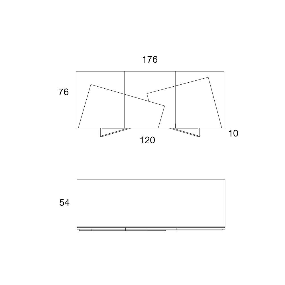 Ky bufe për dhomën e ndenjes përmban një dizajn të bërë tërësisht me MDF të llakuar në një përfundim metalik antracit me 3 dyer dhe 3 rafte të brendshëm në xham transparent të kalbur . E veçanta e komplementit jepet nga futjet prej qeramike mat në dyert e disponueshme në përfundime të ndryshme. Dizajni krijon kështu një lojë të gjallë të formave për një rezultat të rafinuar dhe të gjallë, të përshtatshëm për dhomat e jetesës më të rafinuara dhe elegante ose mjediset më informale.