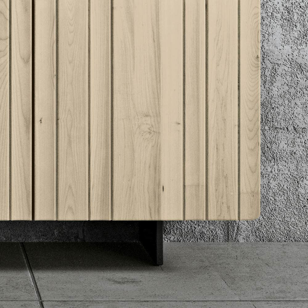Bofoni i dhomës së ndenjes me 3 dyer me gdhendje vertikale në një stil modern i përbërë nga këmbë hekuri,guaskë MDF me finiturë hekuri dhe mbrapa druri solid e kompletuar me dyer dërrasashhiri ngjyrë rëre, të prodhuara në Itali , nëpërmjet përdorimit të punimeve dhe materialeve me cilësi të lartë. cilësi e kombinuar me shijen e rafinuar të dizajnit bashkëkohor. Një dizajn i gjithanshëm dhe origjinal i krijuar për të pasur përdorime të ndryshme brenda zonave të ndryshme të shtëpisë, duke kompletuar arredimin në një mënyrë ekskluzive bazuar në shijet dhe nevojat tuaja.