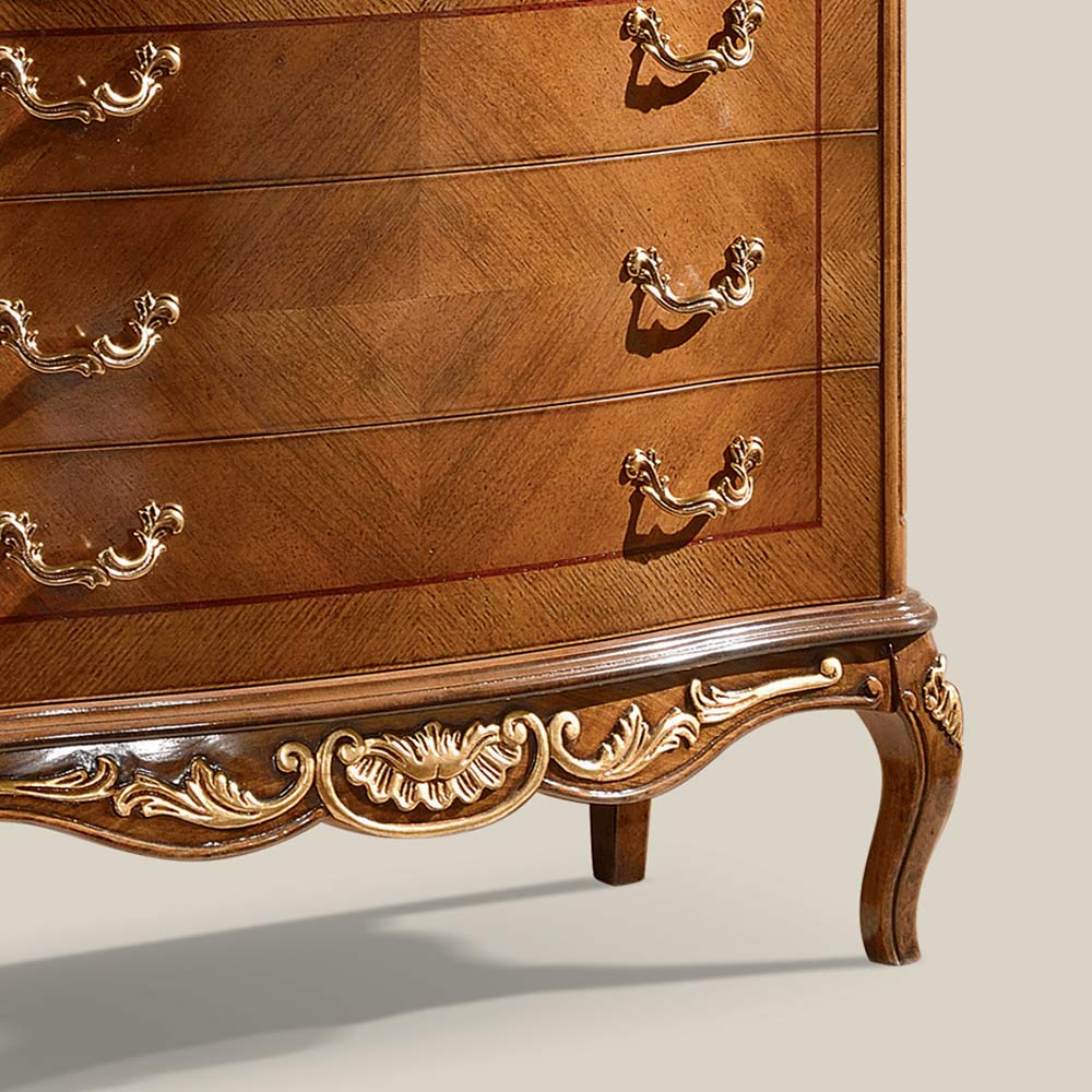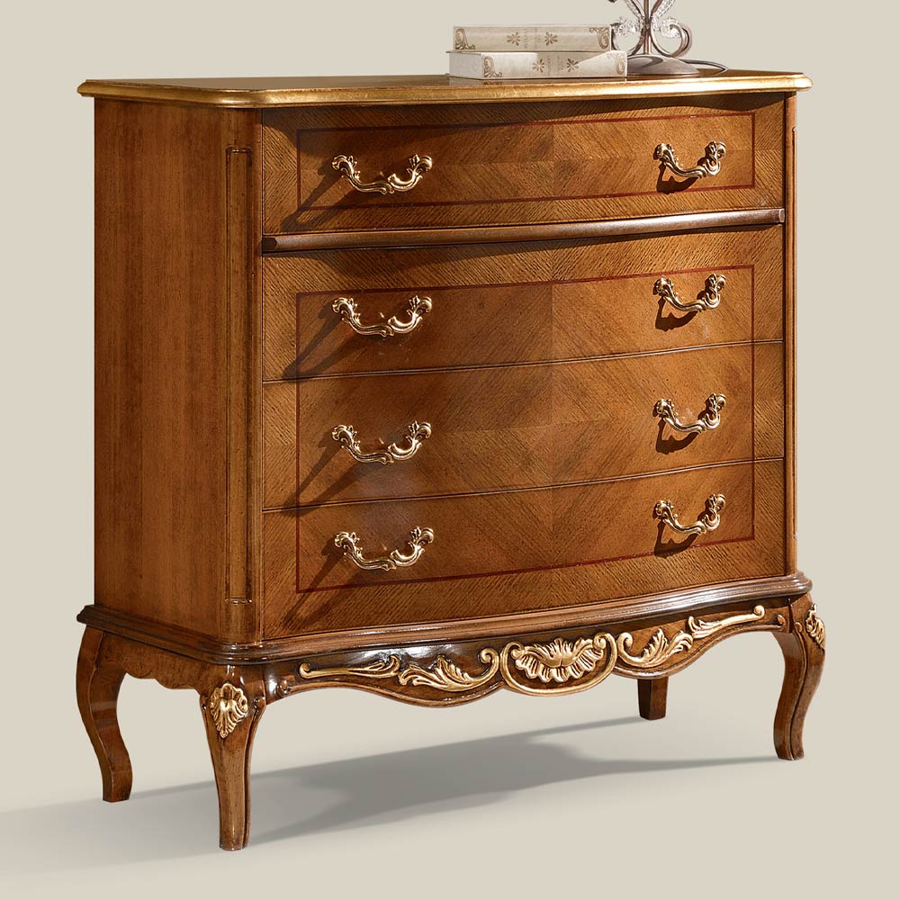 Bufeja e dhomës së ndenjes në stil klasik, e bërë me dru të çmuar, e disponueshme në përfundime të bardha me detaje argjendi ose arrë Bassano me shtresa kurriz peshku dhe detaje ari, një plotësues i rafinuar në gjendje të pasurojë zonën e ndenjes duke u futur me elegancë dhe maturi. Prodhuar tërësisht në Itali dhe punuar me dorë nga mjeshtra të aftë , të përfunduara me mençuri dhe shije për elegancë. Prodhimi kryhet duke përdorur materiale të shkëlqyera , dhe duke kryer punënmedorë me kujdesin dhe profesionalizmin maksimal që i dallon produktet Made in Italy .