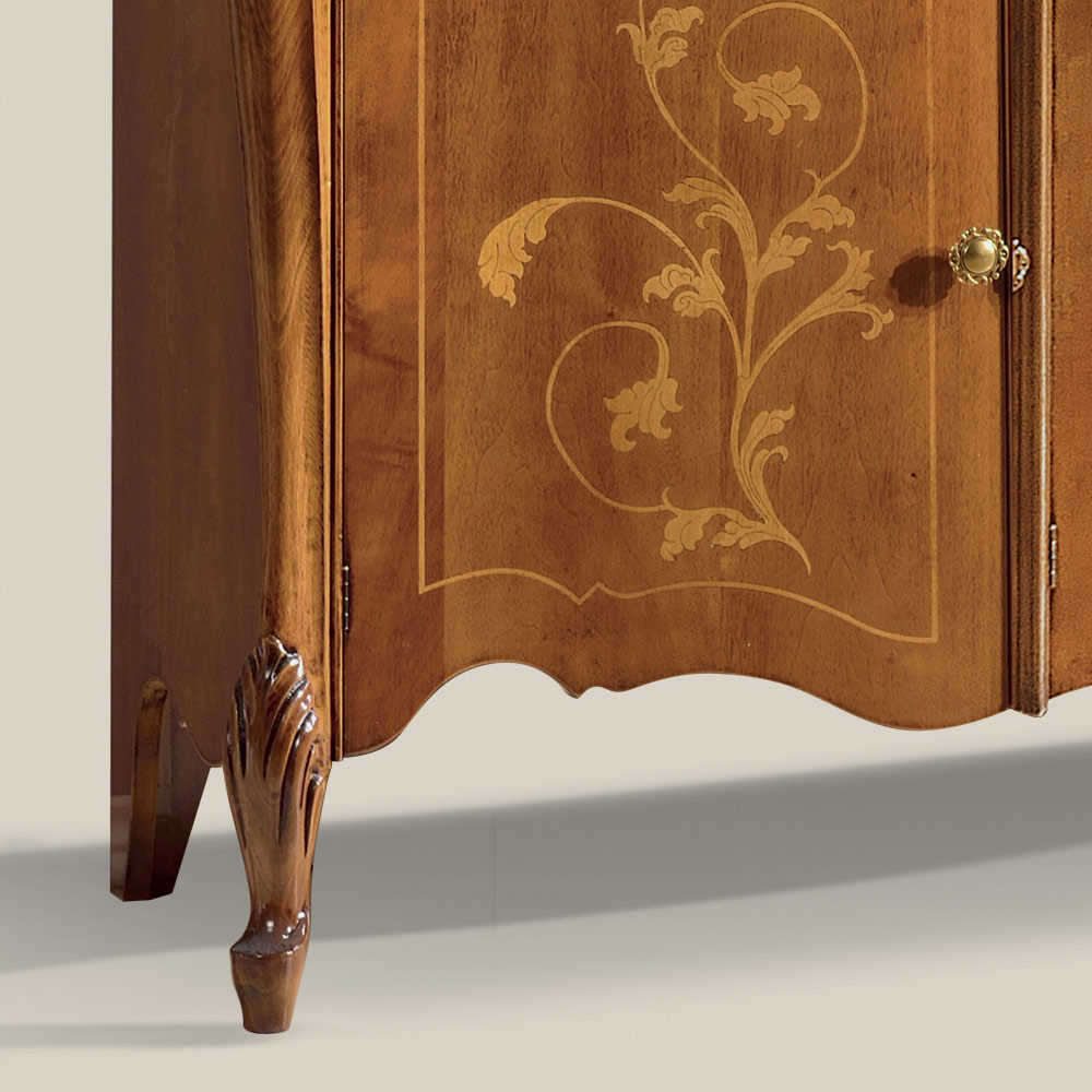 Ky bufe i stilit klasik është i përsosur për të dekoruar me stil dhe elegancë një dhomë ndenjeje, një dhomë pune ose një dhomë gjumi. Eshte prej druri ne ngjyre fildishi, arre ose me dekorim venecian dhe ka 4 dyer dhe 3 sirtare praktike dhe te bollshme . Një komplement unik dhe i rafinuar, i bërë tërësisht në Itali nga mjeshtra të aftë , mjeshtër të artit që përfundojnë çdo komplement me mençuri dhe shije për elegancë. Prodhimi kryhet duke përdorur materiale të shkëlqyera , dhe duke kryer punënmedorë me kujdesin dhe profesionalizmin maksimal që i dallon produktet Made in Italy .