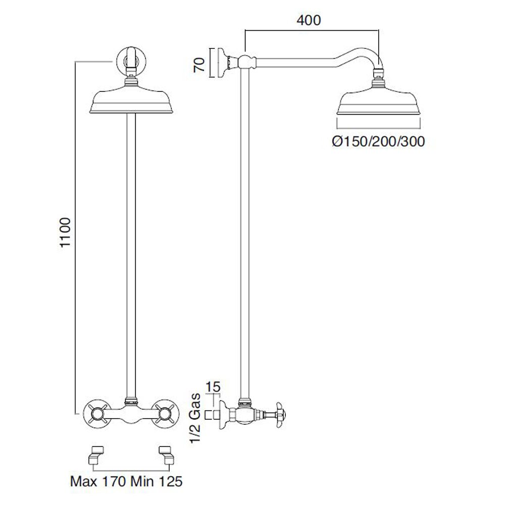 Madhësitë e disponueshme për kokën e dushit:- diametri 15 cm