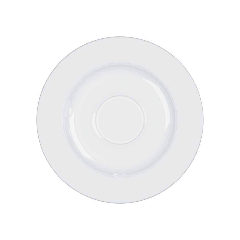 Set filxhani për mëngjes me dizajn modern me pjata dhe pjatanca në porcelan të bardhë, 14 copë.
