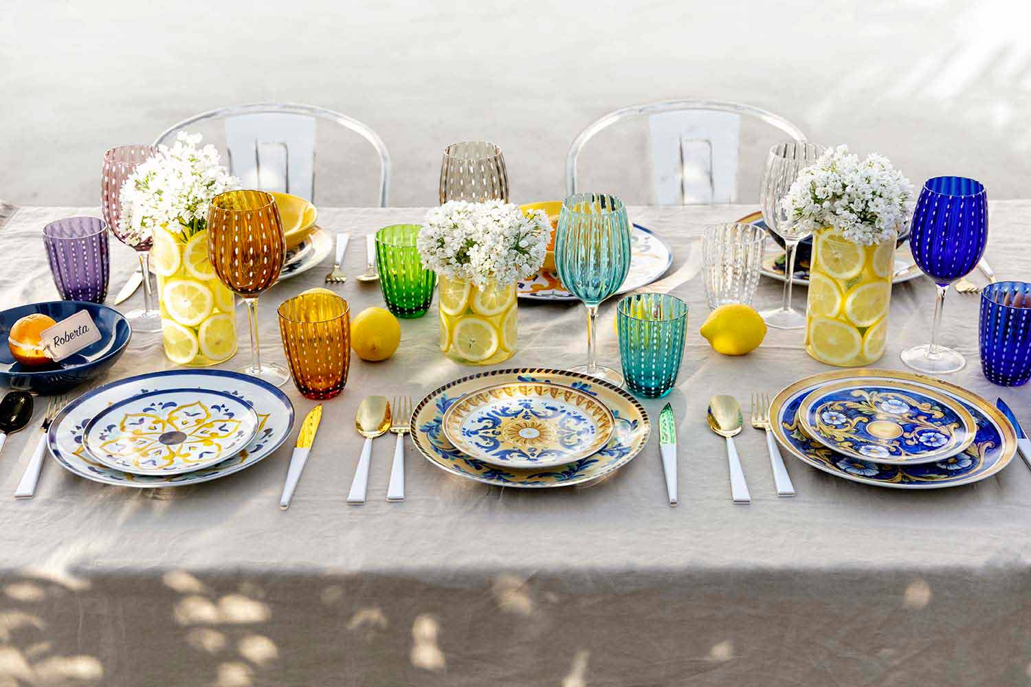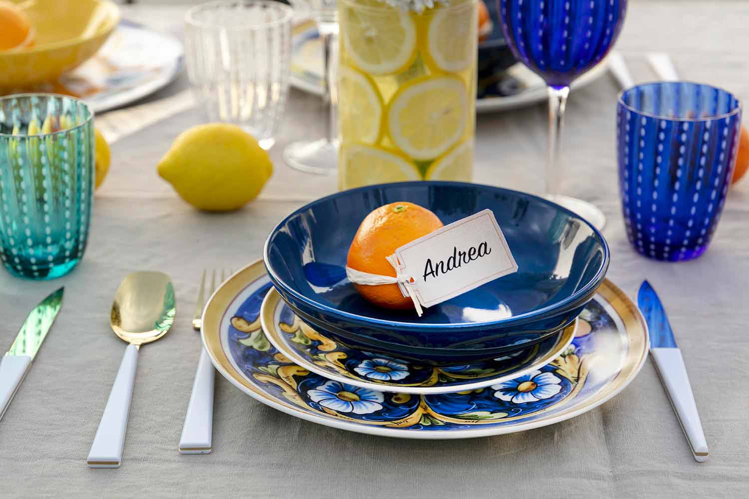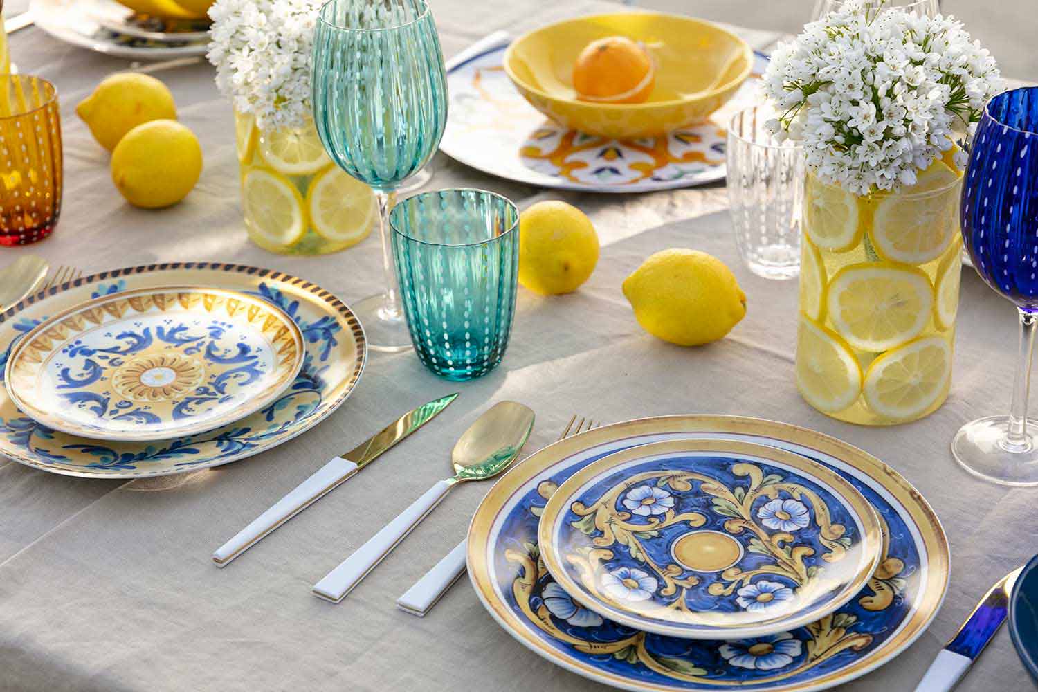 Frymëzuar nga majolica e saj tradicionale, kompleti sjell në tryezë