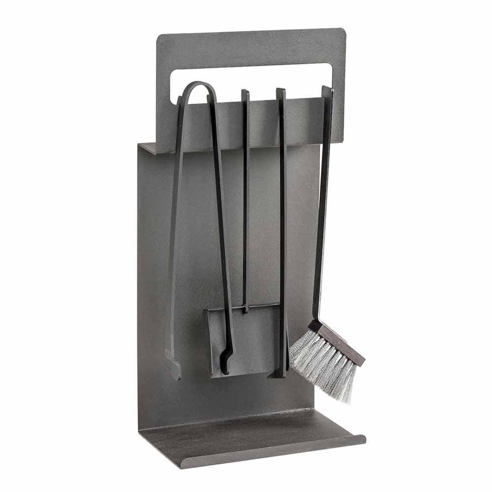Mbajtësi i veglave Rachel për fireplace është një plotësues i domosdoshëm për t'u vendosur së bashku me mbajtësin e trungut pasi është i pajisur me katër lloje të ndryshme mjetesh të dobishme për mirëmbajtjen e zjarrit dhe pastrimin e fireplace.