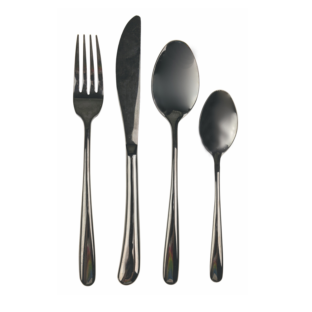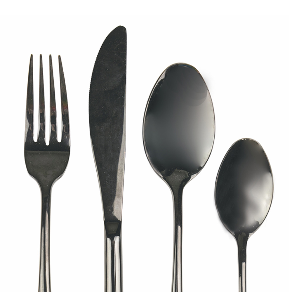 Komplet takëmesh çeliku me shkëlqim të zi me dizajn të rrumbullakosura 24 copë - Drop