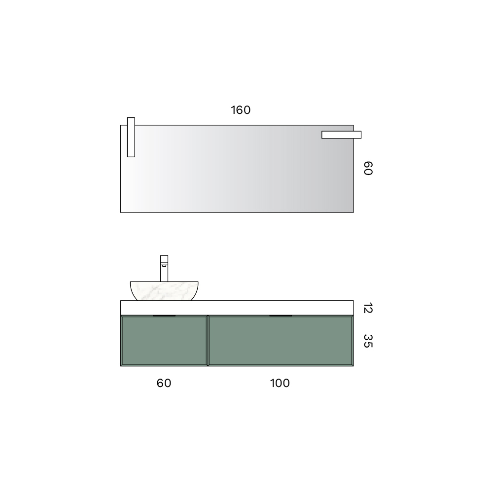 Një kompozim banjoje elegant dhe bashkëkohor , i projektuar për hapësira të rafinuara dhe moderne. Kombinimi i një përfundimi mat me ngjyrë të urtë , sipërfaqeve të lehta dhe detajeve të ndritshme krijon një atmosferë të ekuilibruar dhe relaksuese me një estetikë mbresëlënëse.