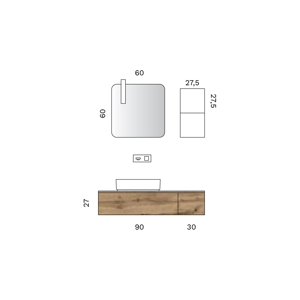 Struktura përbëhet nga njësi bazë të varura me sirtarë , të projektuara për të siguruar menaxhim funksional të hapësirës dhe organizim perfekt të aksesorëve. Sifoni i integruar ruan një linjë të pastër dhe minimaliste, duke rritur ekuilibrin formal të dizajnit të përgjithshëm.