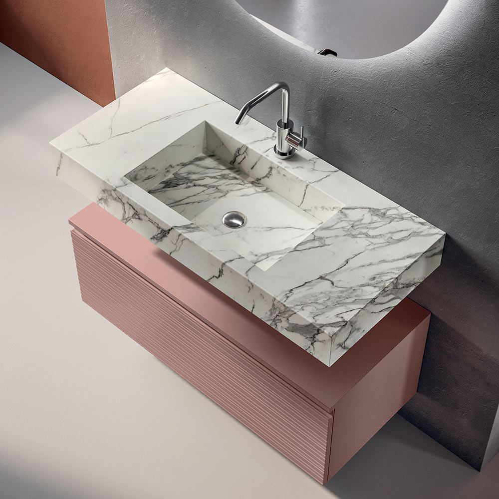 Sipërfaqja e lavamanit HPL me efekt Calacatta prezanton një notë materiali me ndikim të madh vizual: estetika e frymëzuar nga mermeri jep shkëlqim dhe vlerë, duke ruajtur performancë të lartë për sa i përket rezistencës dhe praktikës për përdorim të përditshëm.