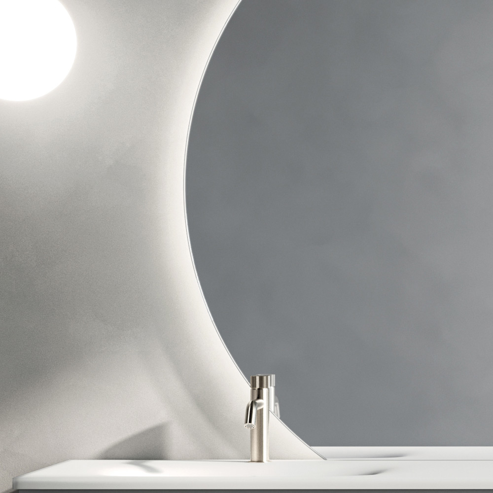 Pamjen e plotëson pasqyra rrethore LED , e cila shpërndan një dritë të butë dhe të njëtrajtshme, duke rritur funksionalitetin e zonës së lavamanit dhe duke ndihmuar në krijimin e një atmosfere mikpritëse dhe relaksuese.