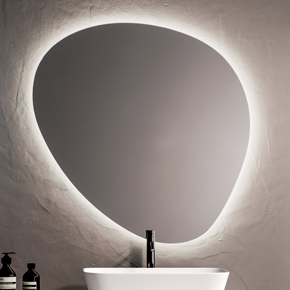 Pika qendrore e kompozimit është pasqyra LED e konturuar , e cila hedh një dritë të butë dhe mbështjellëse përgjatë perimetrit, duke përmirësuar hapësirën e banjës dhe duke krijuar një atmosferë elegante dhe relaksuese. Ndriçimi i integruar përmirëson rehatinë vizuale dhe thekson ndjesinë bashkëkohore të hapësirës.