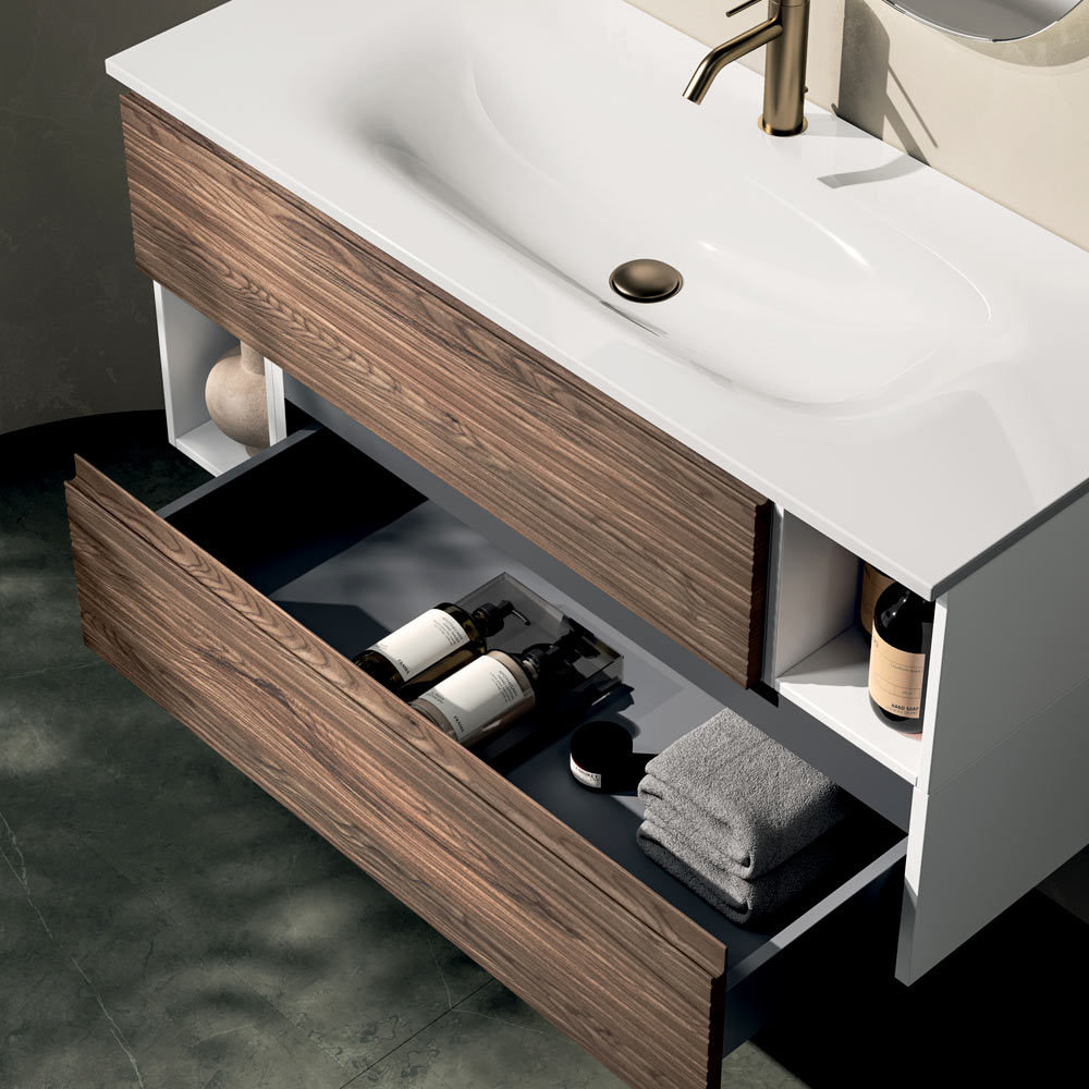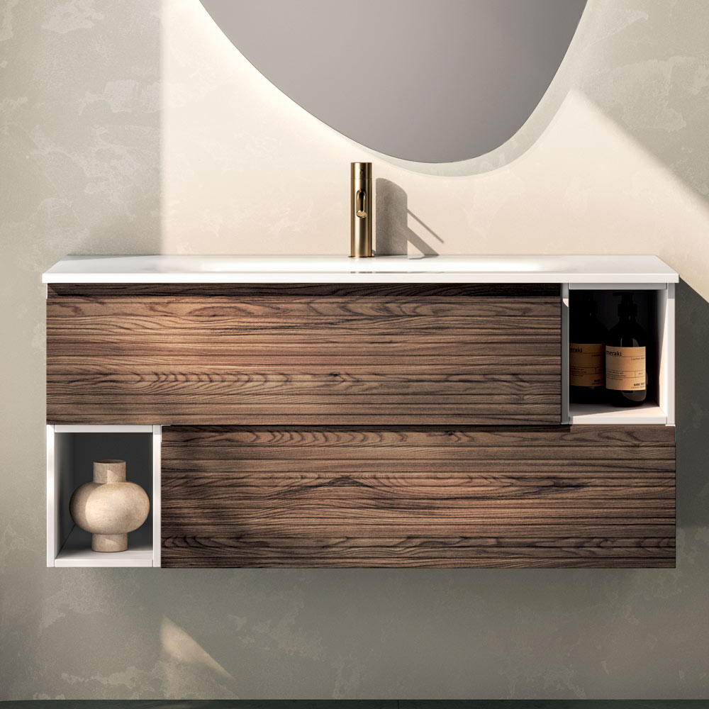Një propozim për mobilje banjoje nga dizajner, ideal për ata që kërkojnë një ekuilibër midis estetikës bashkëkohore, materialeve natyrore dhe funksionalitetit të përparuar, duke e transformuar banjën në një hapësirë elegante, mikpritëse me një personalitet të fortë.
