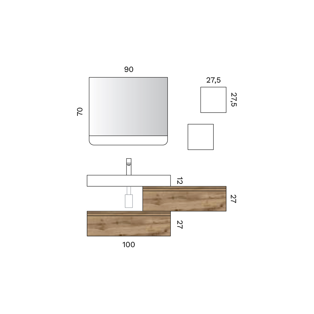 Kompozim elegant i varur për banjo që kombinon ngrohtësinë e drurit natyror me linjat bashkëkohore, ideal për banjo moderne dhe të rafinuara.